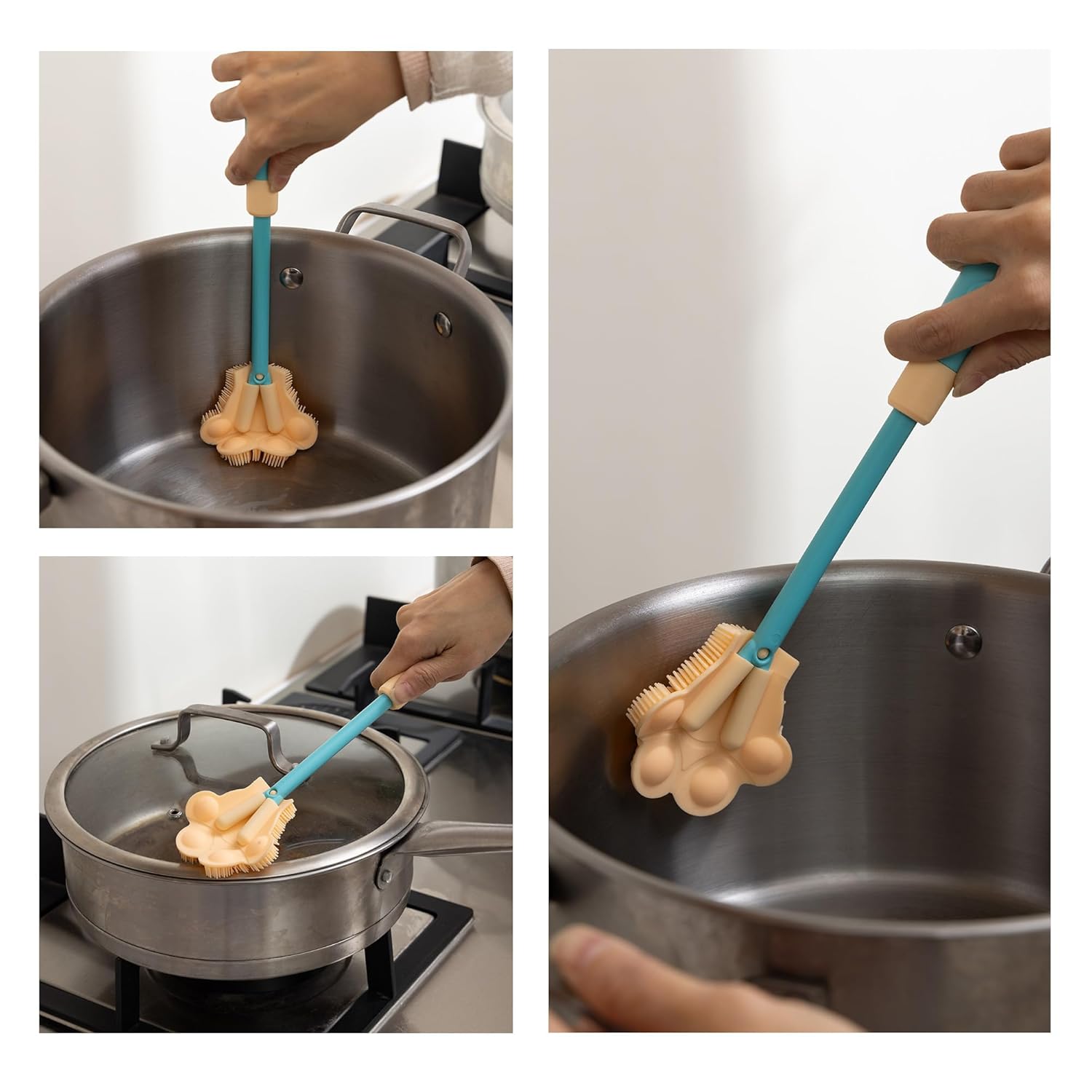- This product has 3 parts. 1 Pawprint silicone brush and 1 silicone Nipple/Pacifier brush that can adjust the extension length according to needs. Besides, with 1 multifunctional Tiny Cup Lid Gap Cleaning Brushes.