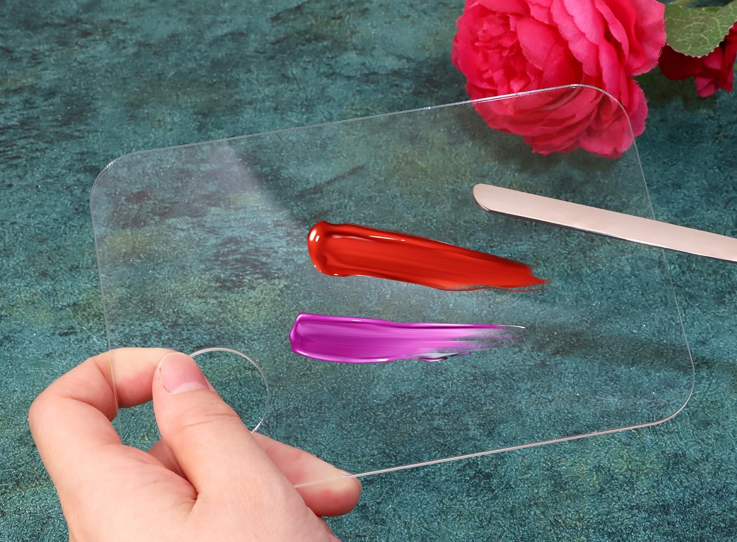 - Great to mix makeup or face painting. You can put liquid products on palette,so you wasn’t getting the back of the hand messy. Easy to store away,the spatula be uesed to scoop or mix products. Pretty easy to clean