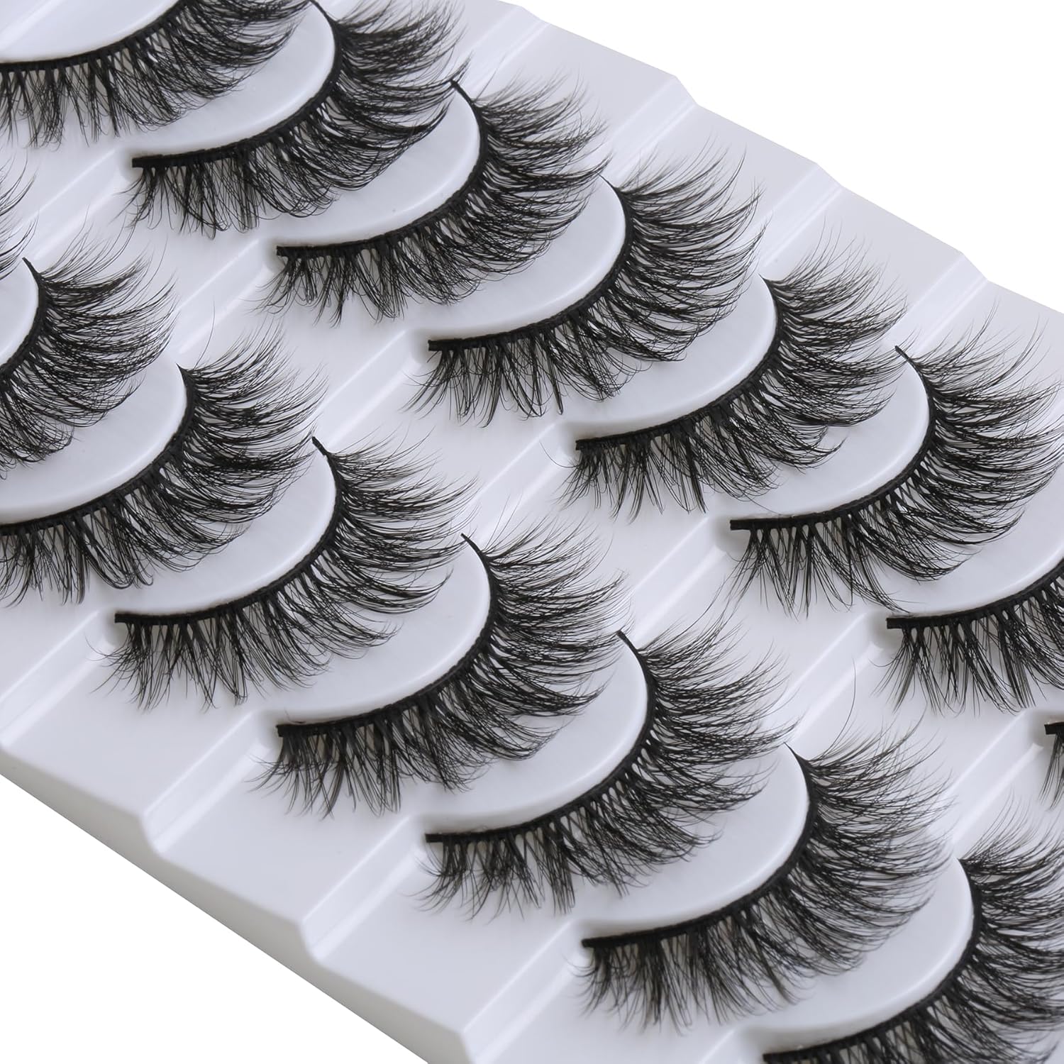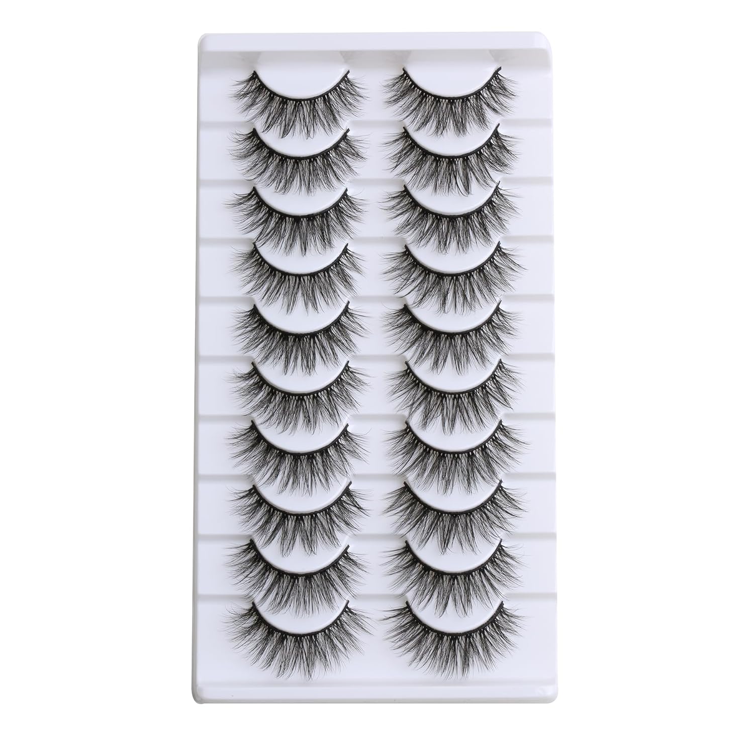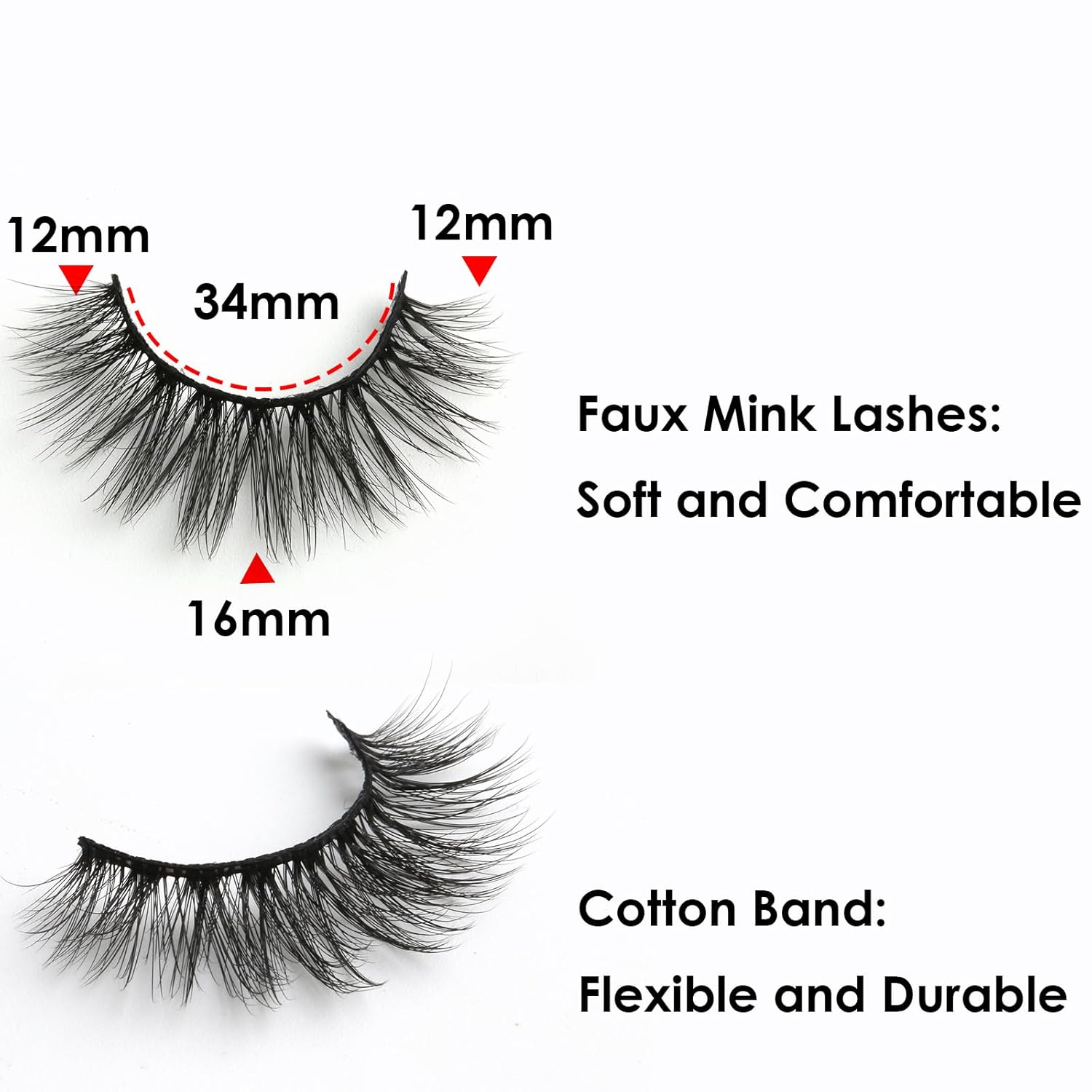 SUNWELL False Eyelashes 16mm Mink Lashes Faux Mink Lashes 8D Fluffy Strip Eye Lashes Wispy Soft Luxury Volume Fake Eyelashes 10 Pairs Pack