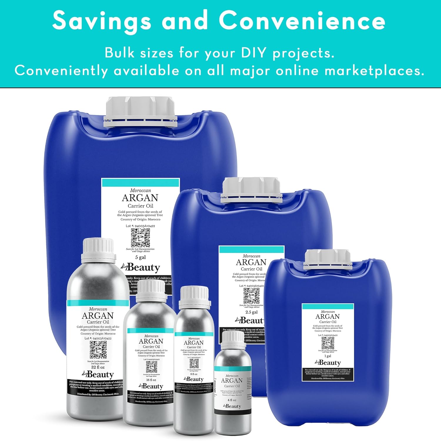 DIYBeauty Bulk Argan Oil - Large 2.5 Gallon Jerrican - Natural, Cold Pressed, 100 Percent Pure Argan Oil for Homemade Hair, Face and Skin Products - Light Aceite de Argan Carrier Oil