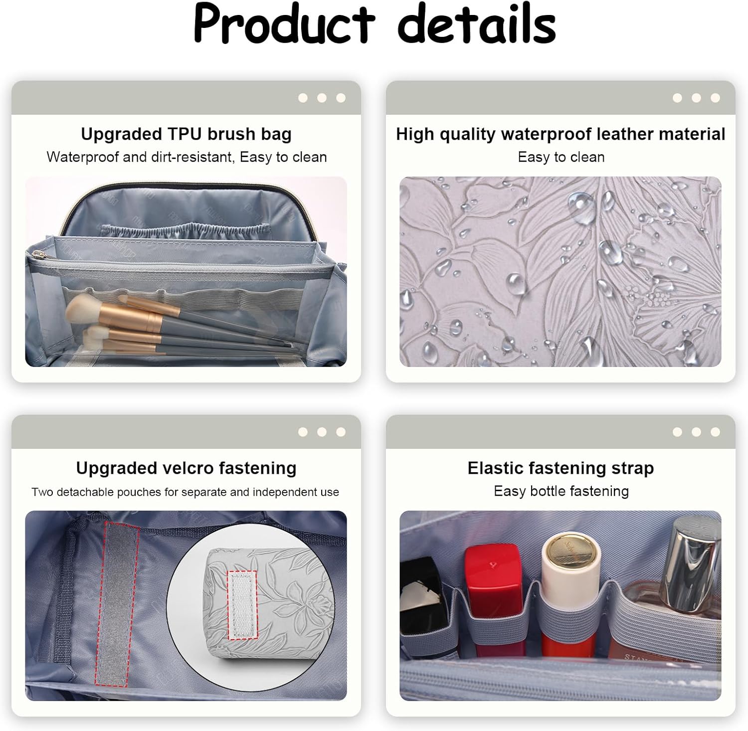 - 3 Pcs Makeup Bags Set: This travel make up bag comes with two detachable makeup pouches, ensuring optimal organization for your skincare products and cosmetics. Perfect for your travel, business trips, vacations, outdoor activities and picnics.