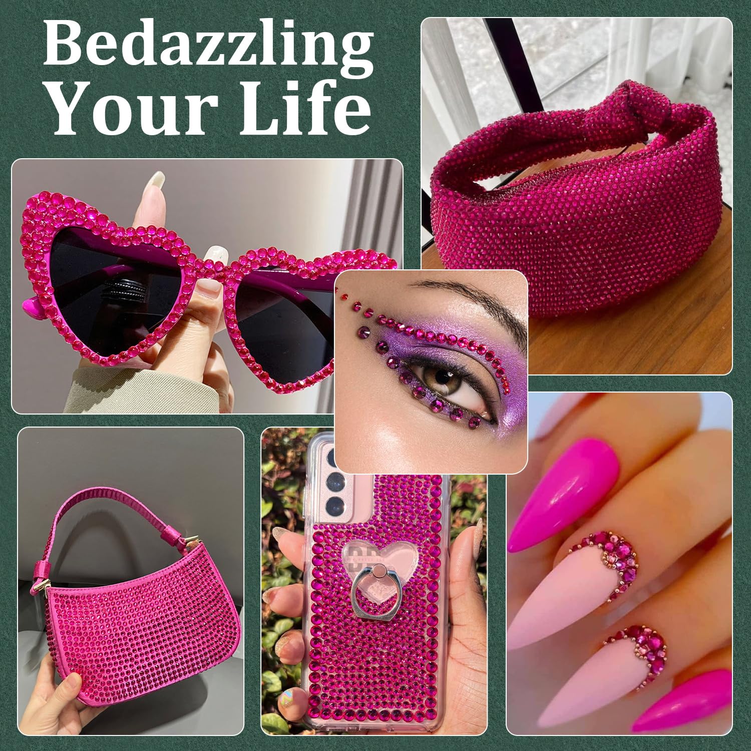 Resin Rhinestones for Crafting with B7000 Jewelry Glue, 1 Box Hot Pink Flatback Crystals with 3Pcs 10ml Glue for Bedazzling Crafts DIY Nail Art Makeup,Non Hotfix Gems for Clothing Shoes