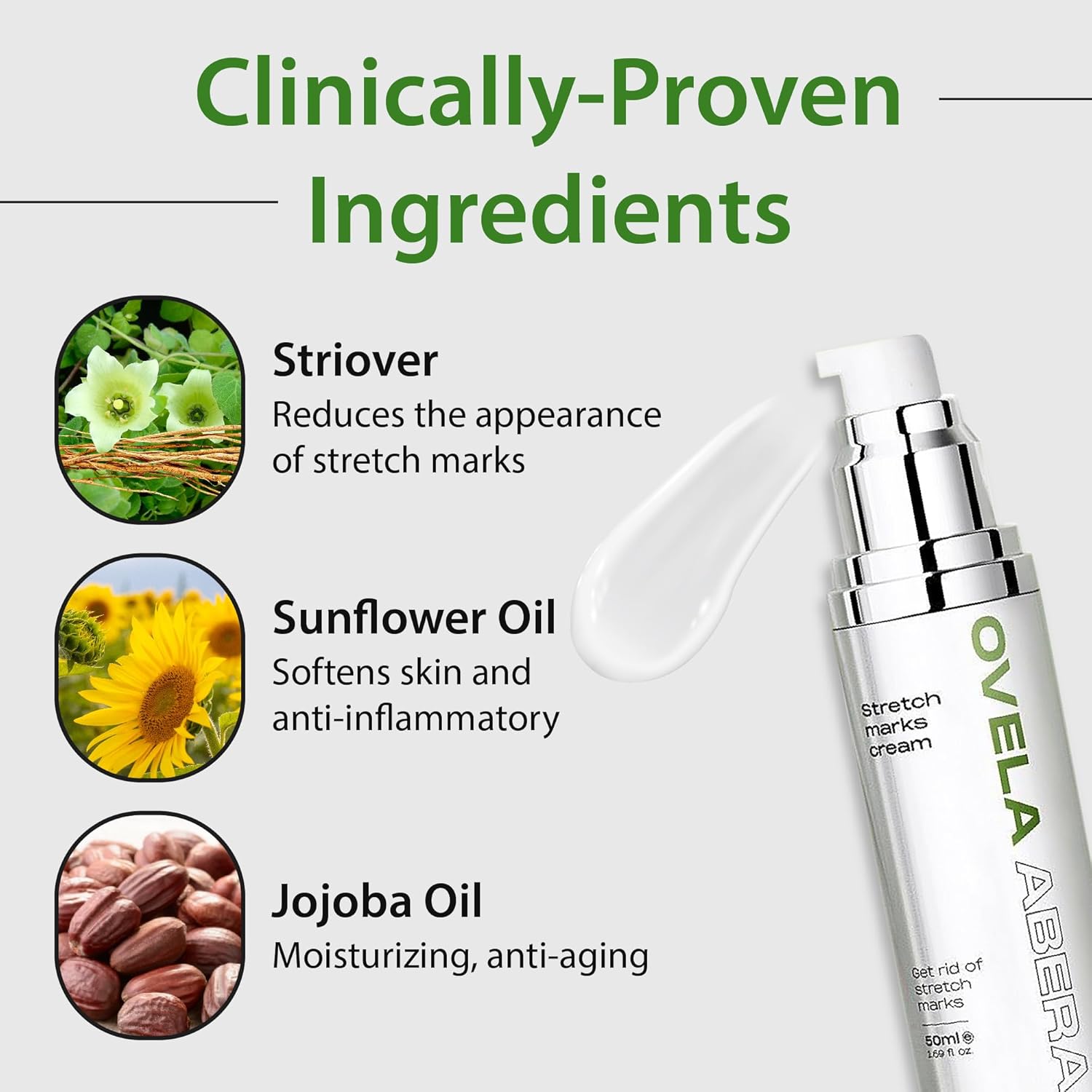 - ๐๐จ๐ฎ๐ซ๐ข๐ฌ๐ก๐๐ฌ ๐๐ง๐ ๐๐ฒ๐๐ซ๐๐ญ๐๐ฌ: Enriched with natural ingredients like Sunflower Oil and Jojoba Oil, our maternity stretch mark lotion deeply nourishes and hydrates your belly skin, enhancing its elasticity and leaving it with a radiant glow.