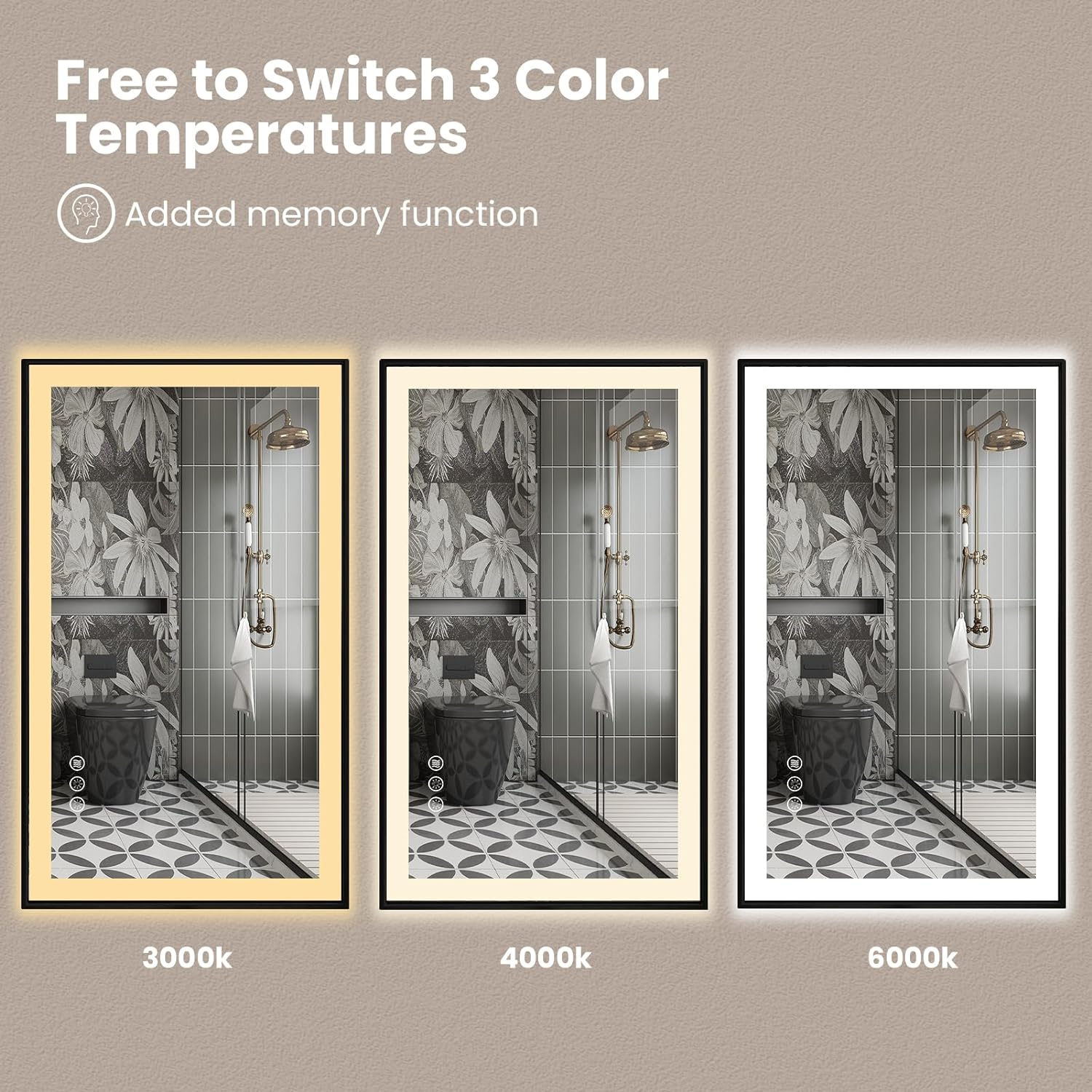 Amorho 40"x 32" LED Bathroom Mirror with Black Frame, Front Light and Backlit(Controlled Separately), Stepless Dimmable, Anti-Fog, Shatter-Proof, 3 Colors, Memory