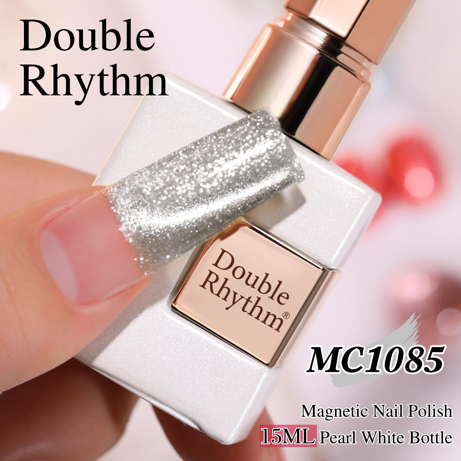 Double Rhythm 15ML Glitter Gel Polish 0.5Oz Shimmer Reflective Color for Nail Art Salon DIY at Home (Cat Eye Silver-MC1085)