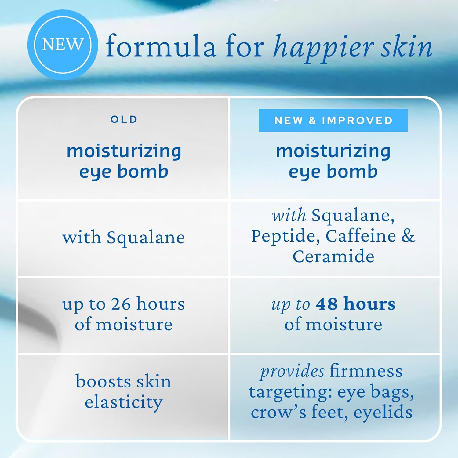 - Special Feature : Clinically tested to retain skin’s moisture for up to 48 hours, FORMULATED WITHOUT: Mineral oil, synthetic fragrance (less than 1%), synthetic colors, synthetic preservatives, Clinically shown to provide firmness targeting 3 areas: eye bags, crow’s feet, eyelids, Clinically tested to provide up to 48 hours of moisture and improve skin’s elasticity Clinically tested to retain skin’s moisture for up to 48 hours, FORMULATED WITHOUT: Mineral oil, synthetic fragrance (less than 1%), synthetic colors, synthetic preservatives, Clinically shown to provide firmness targeting 3 ar… See more
