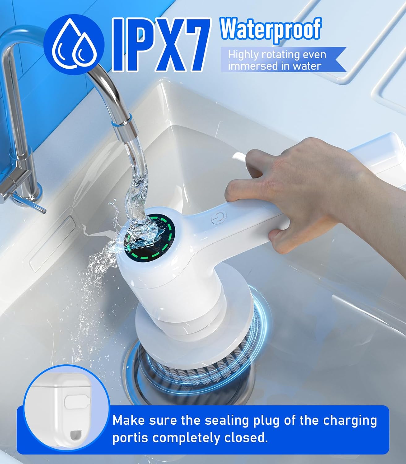 - 【Wide Application and IPX7 Waterproof】 Our cordless cleaning brush scrubber boasts an IPX7 waterproof rating, making it suitable for various surfaces, from bathroom, bathtub, and floors to toilet, window, dishes, sink, and more,Enjoy the convenience of mobility wherever you need it