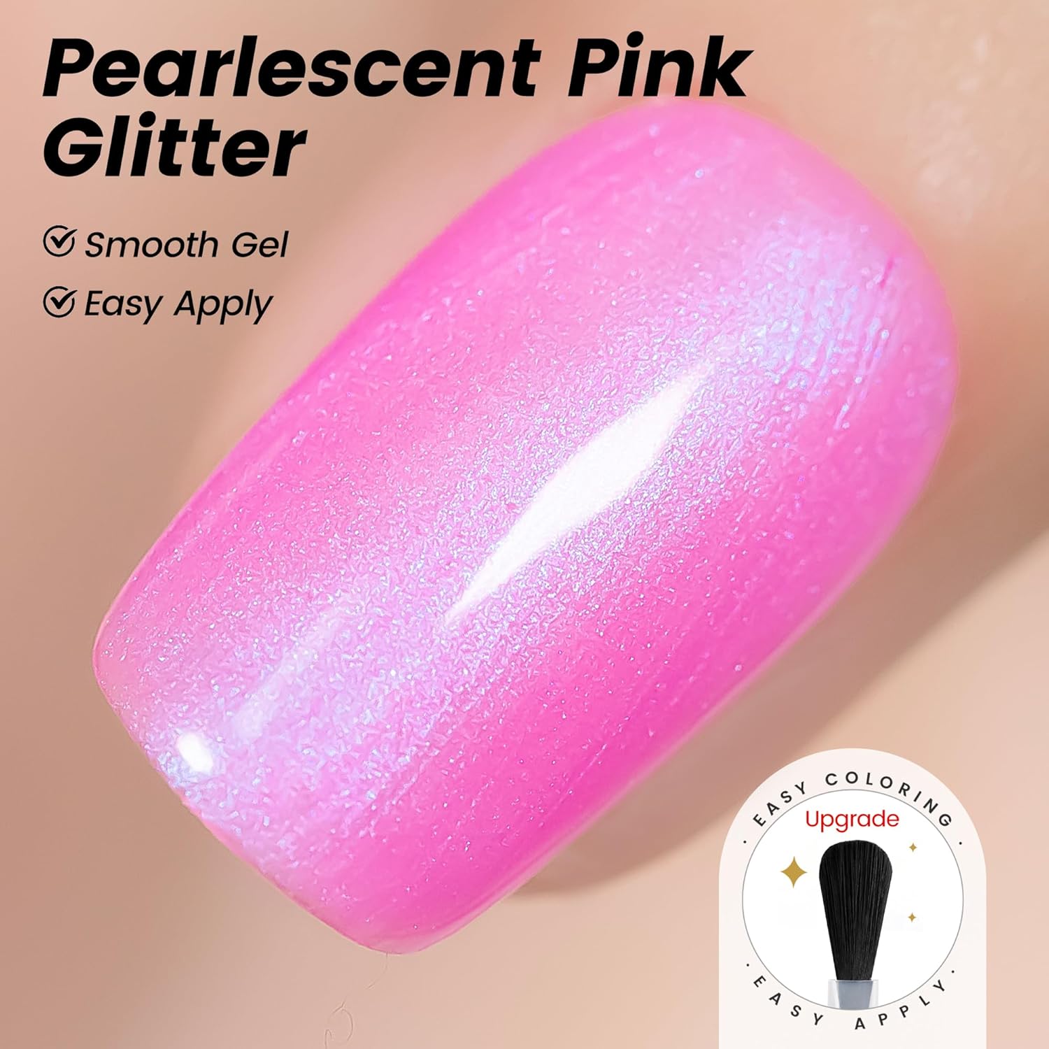 YTD Likomey Gel Nail Polish,15ml Pearlescent Pink Glitter Fall Winter Shimmer Shiny Sparkly Salon Home DIY Manicure UV Color Varnish,SF407
