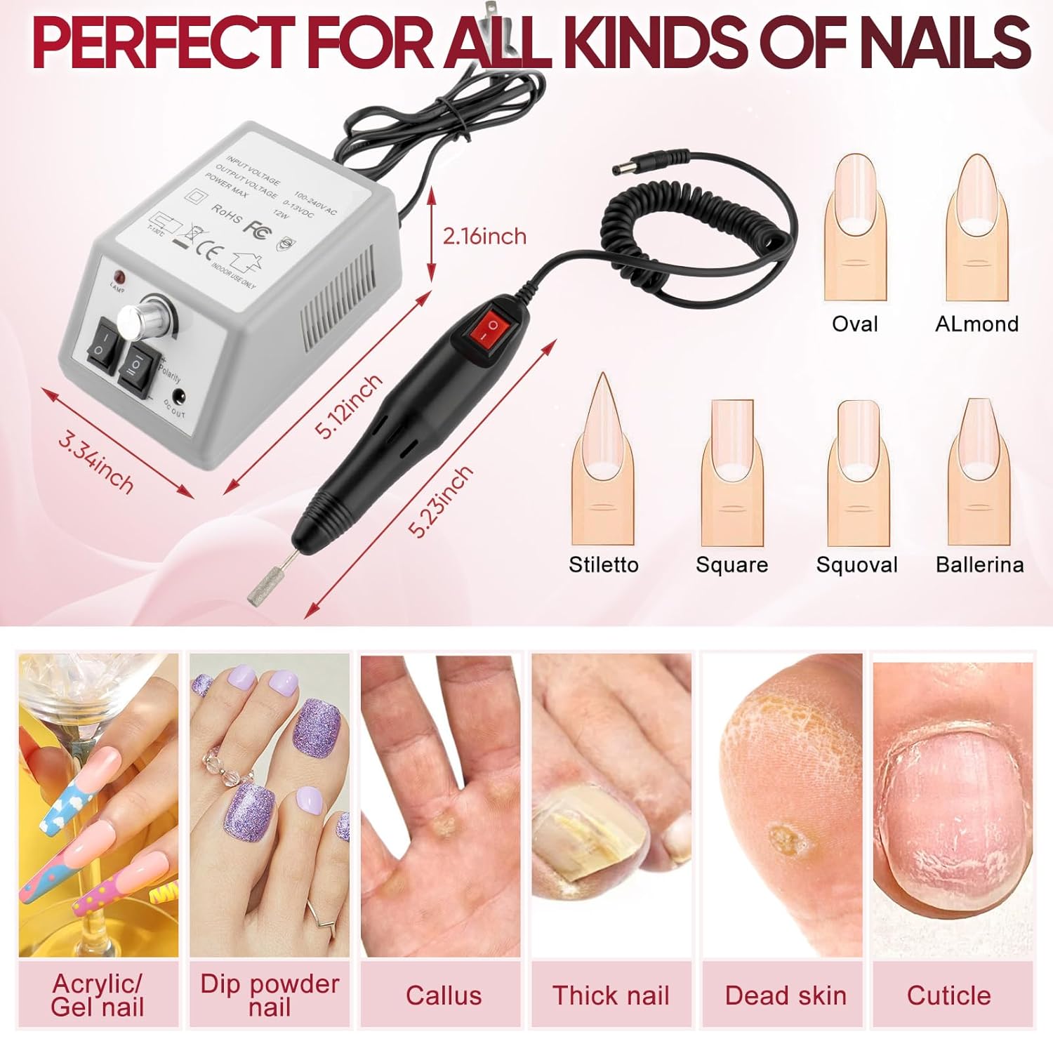 - 【Muti-Functional】Electric Drill Manicure comes with 6 different shapes of drill bit. It polishes nails to a healthy shine, push back cuticles and stimulate the growth of nails Shaping Tool, flatten and smooth extra thick nails and rough surface. Made of High Quality Metal for Multiple Uses: manicure, Carving, engraving, cutting, routing, grinding, sharpening, sanding, polishing. The nail file can be used for natural nails as well as artificial nails, for professional studio use or home use.