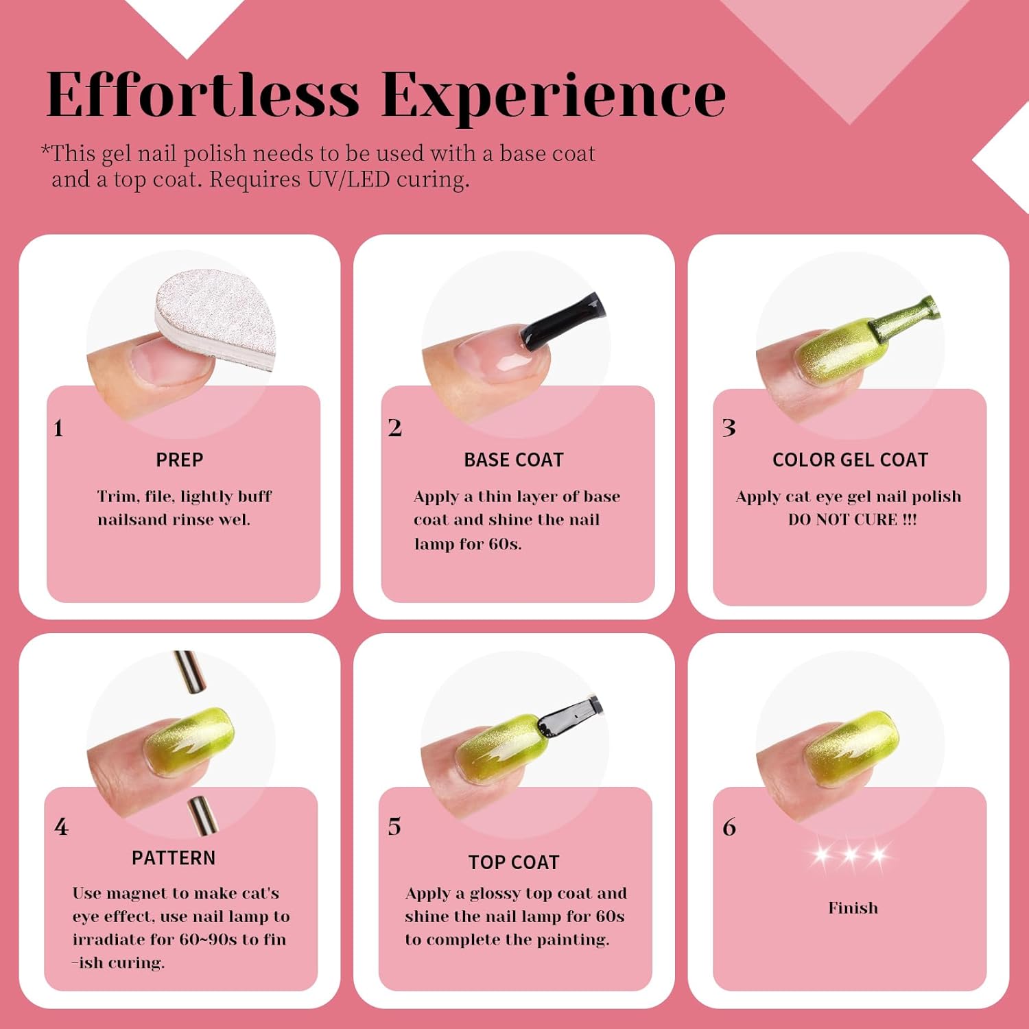 - Achieve professional-quality results from the comfort of your own home. TUTUYU Pink Cat Eye Gel Polish offers easy application and beautiful results every time. Make a statement with nails that are as unique as you are.