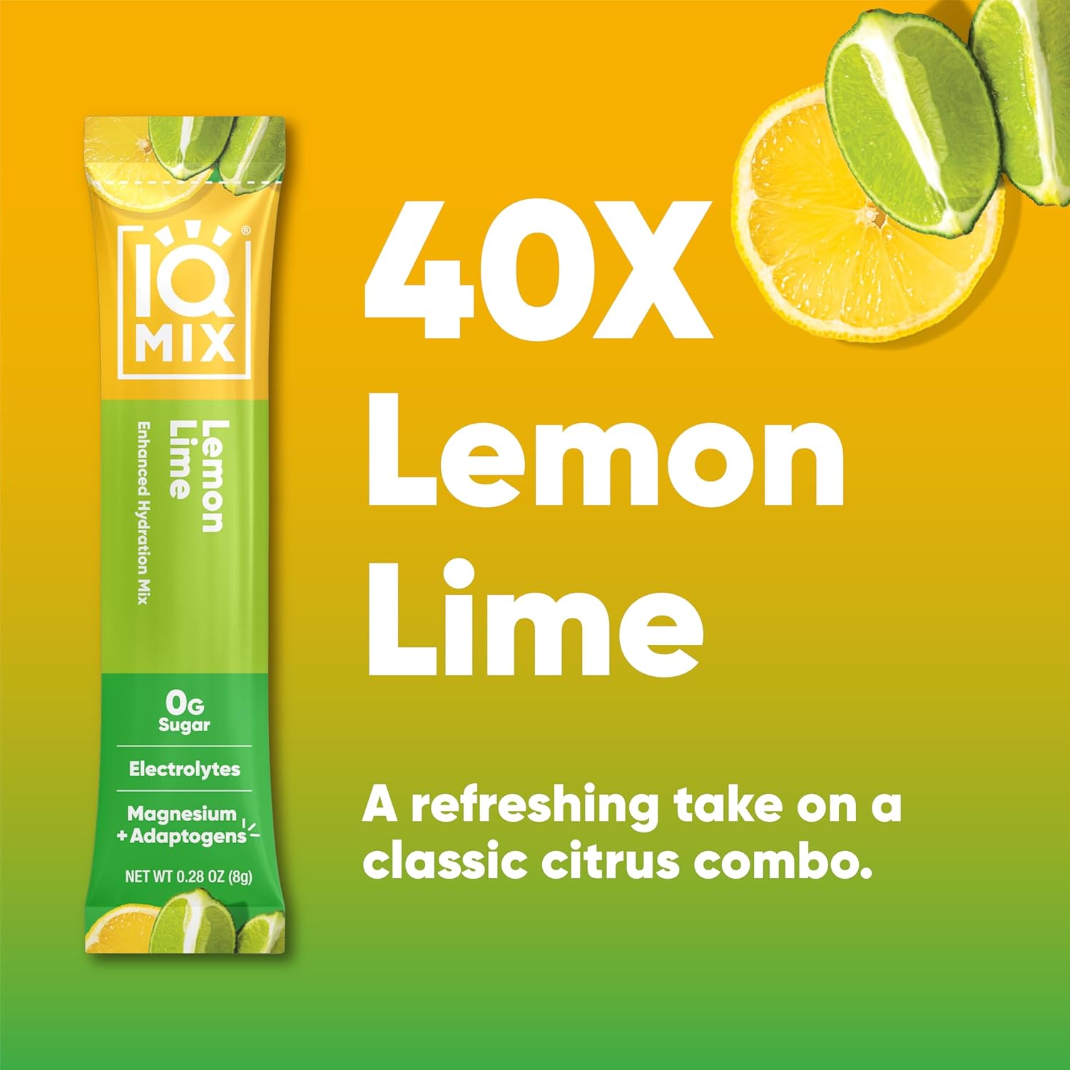 IQMIX Hydration Electrolyte Powder – 4-in-1 Formula for Hydration, Mental Clarity, Mood and Recovery – Sugar-Free Drink Mix, Keto, Magnesium L-Threonate, Lion’s Mane – 40 Count Lemon Lime