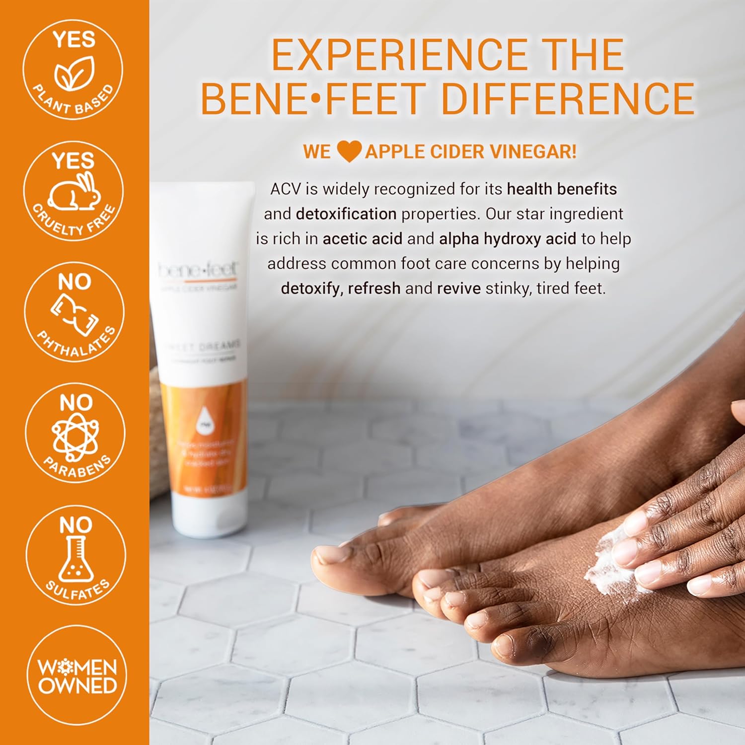 Benefeet Sweet Dreams Overnight Foot Repair - Night Cream for Detox, Moisturize & Soften Dry Cracked Skin, With Apple Cider Vinegar, Turmeric & Borage Oil, 4oz (3 Pack)