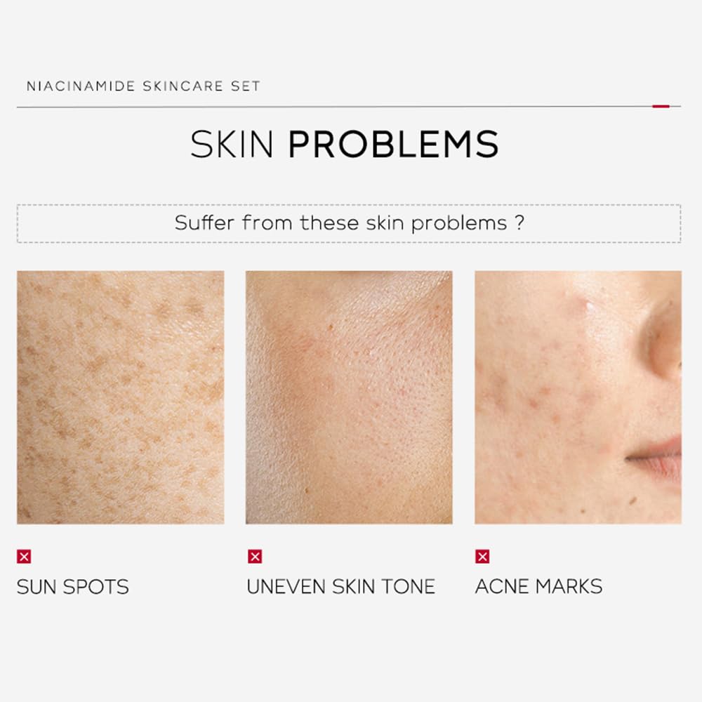 - Cleans & Moisturizes Skin: The travel size skin care kit is infused with niacinamide. Firstly, use the niacinamide cleanser to clean the face and even skin tone; then use the toner to moisturize dry skin;thirdly, use the serum to balance oil secretion;finally, use the facial cream to enhance elasticity so that your skin can glow healthier
