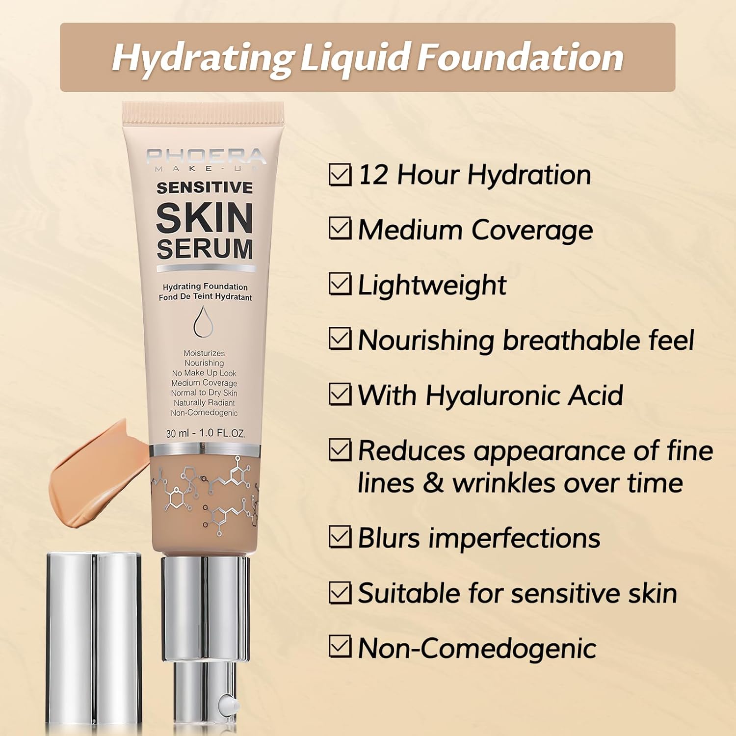 Phoera Foundation Makeup,Flawless Soft Matte Full Coverage with Matte Finish,Hydrating Serum Foundation,Face Makeup for Normal and Dry Skin(N03 Buff Beige, 1PC)