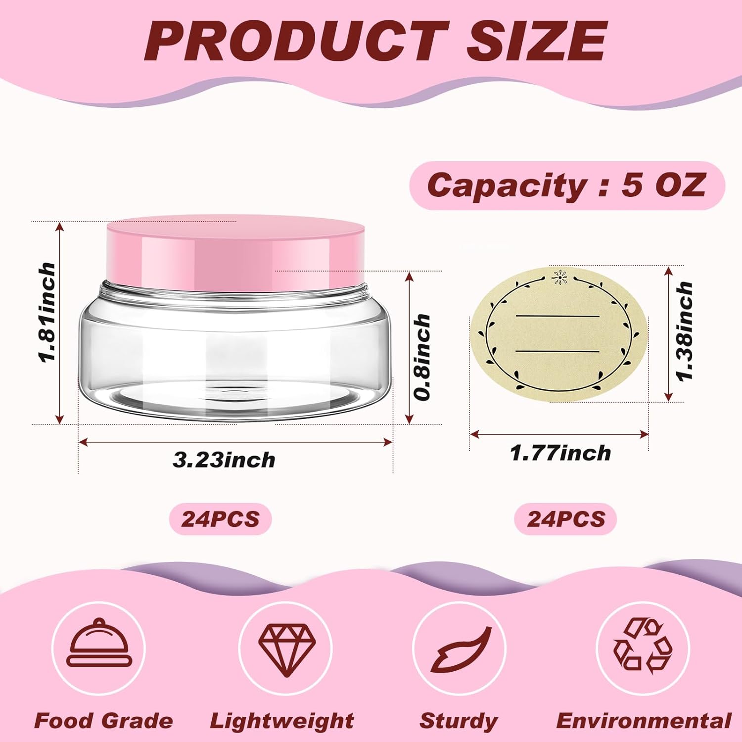 - What Will You Receive: you will get 24 5 ounce small plastic containers with lids and 24 stickers, enough for your daily use and replacement, you can put different labels on different plastic cans to mark them, and you will find the corresponding cans quickly in the future