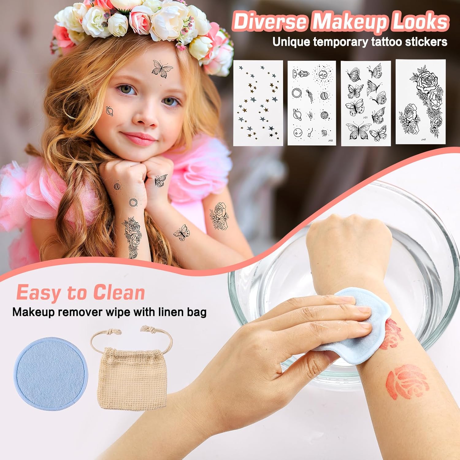 - Suitable for All Skin Types: Our makeup kits cater to almost every age and are completely free from phthalates, parabens, synthetic fragrances, and animal testing, ensuring they are gentle on all skin types. Additionally, a reusable wipe is included for easy makeup removal.
