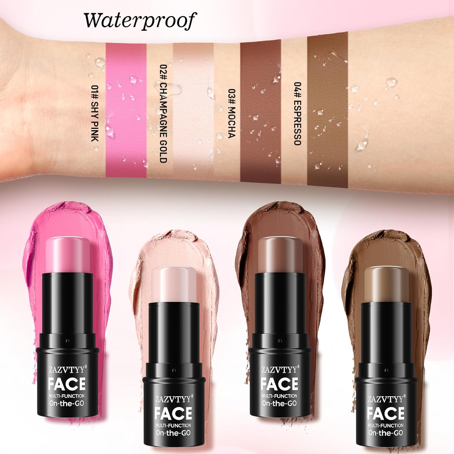 - 【Long-lasting Waterproof】This cream contour has an all-natural formula with subtle hydrating ingredients and conceals skin pores. The highlighter makeup stick’s waterproof formula also keeps your makeup looking long-lasting.