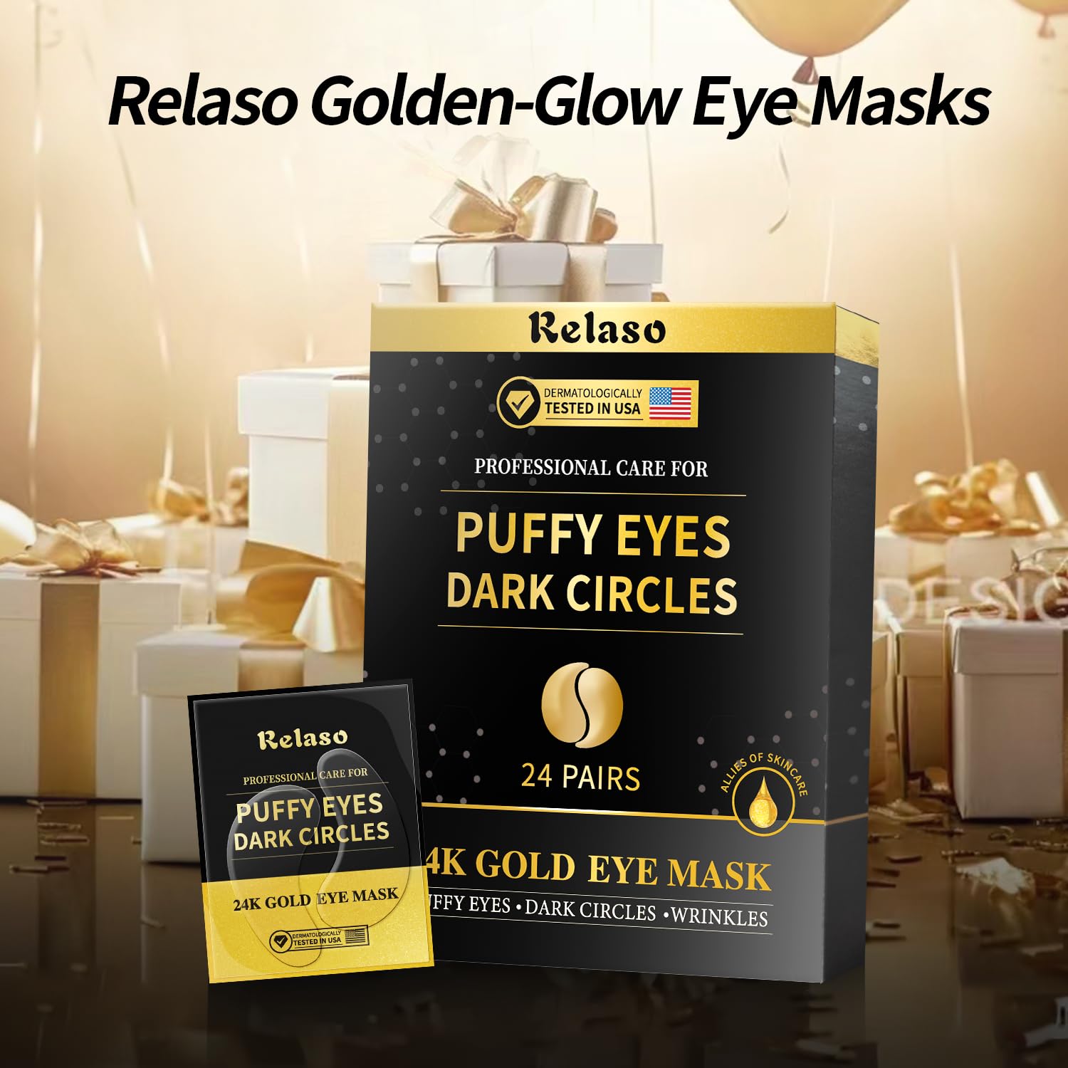 - Reduce Puffiness and Dark Circles: Relaso Under Eye Patches for dark circles and puffiness were created with ingredients full of nutrients to hydrate, reverse and reduce dark circles and puffy skin bringing a new youthful glow to your under eyes!