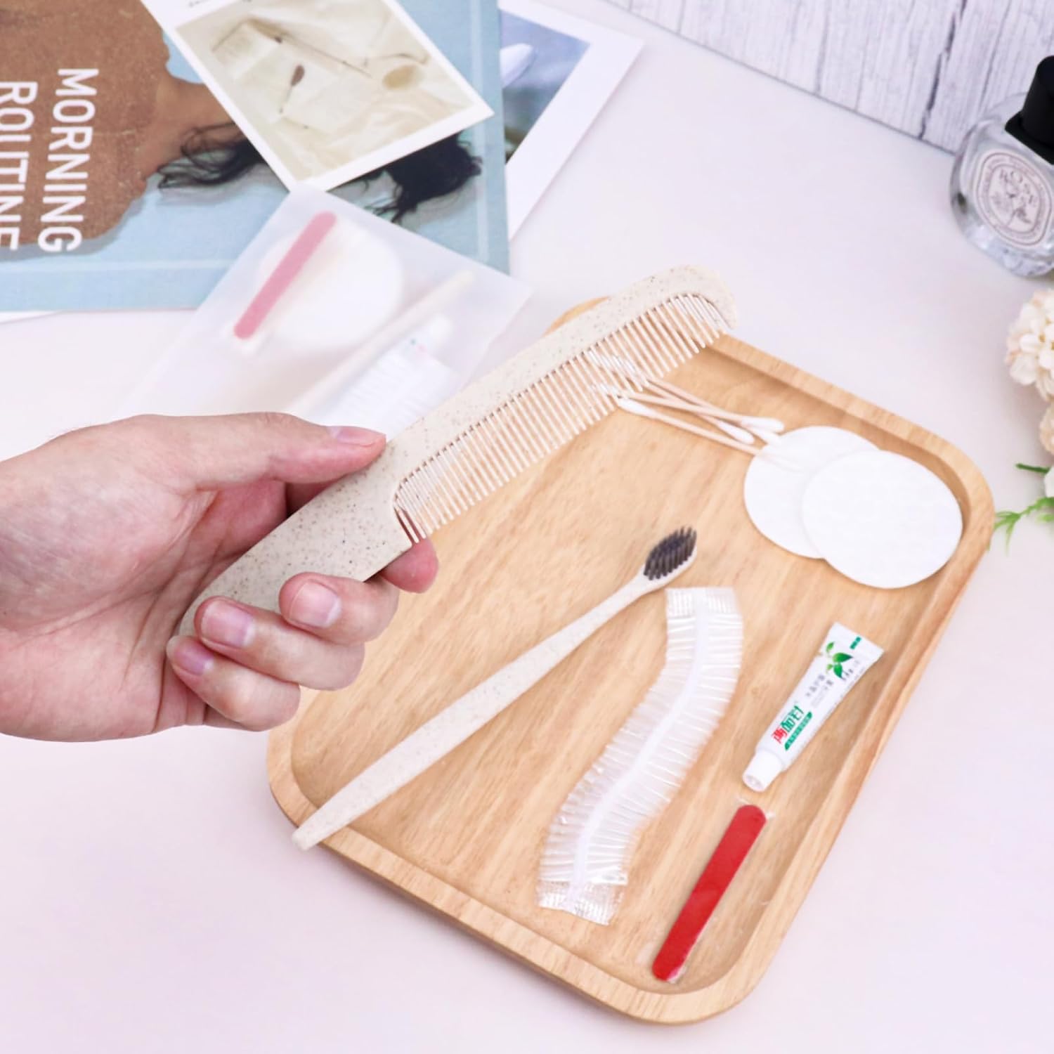 - More sets to match: our hygiene travel kit comes in a pack of 20 sets. Each travel size hygiene products bulk set consists of a disposable Toothbrush, toothpaste, care package, comb, shower cap. personal care travel size toiletries make it even more comprehensive, convenient and comfortable to use. The personal care travel size toiletries are comprehensive, convenient, comfortable and secure.