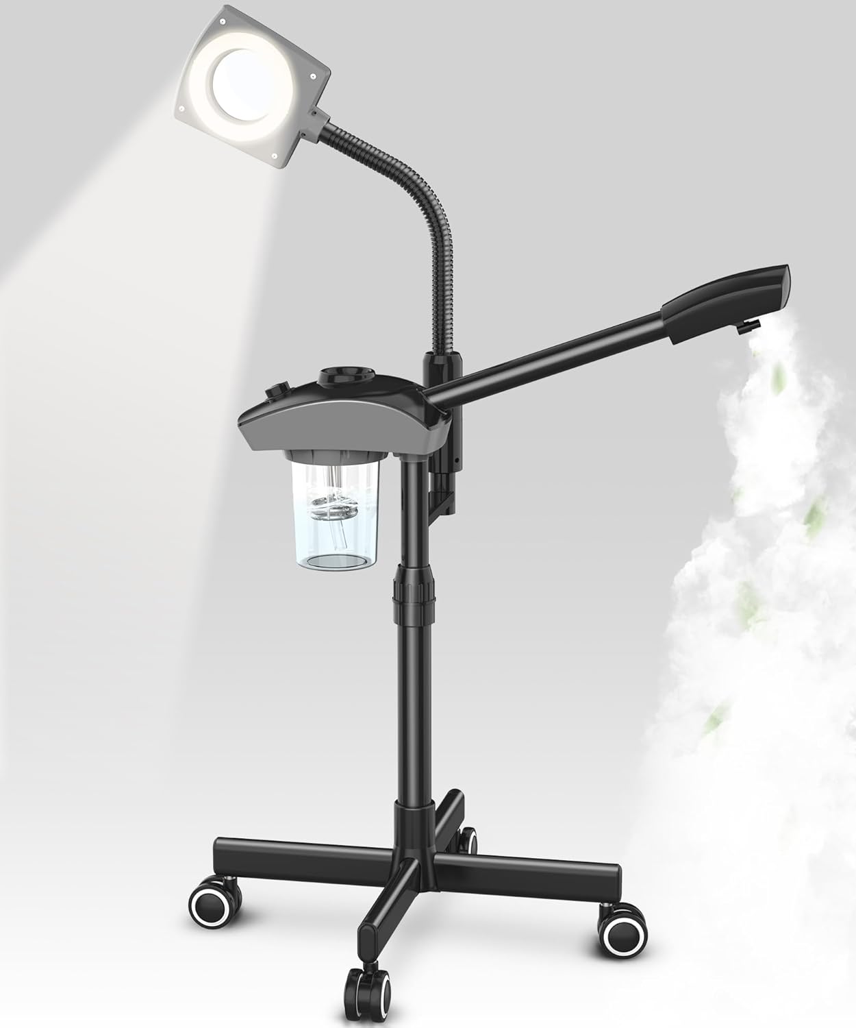 - ✅2 in 1 Professional Facial Steamer: Facial steamer and magnifying lamp are very useful multifunctional beauty devices. The facial steamer for esthetician help to open the pores. Oil, dirt and dust can collect in the pores and this opening can set them free.