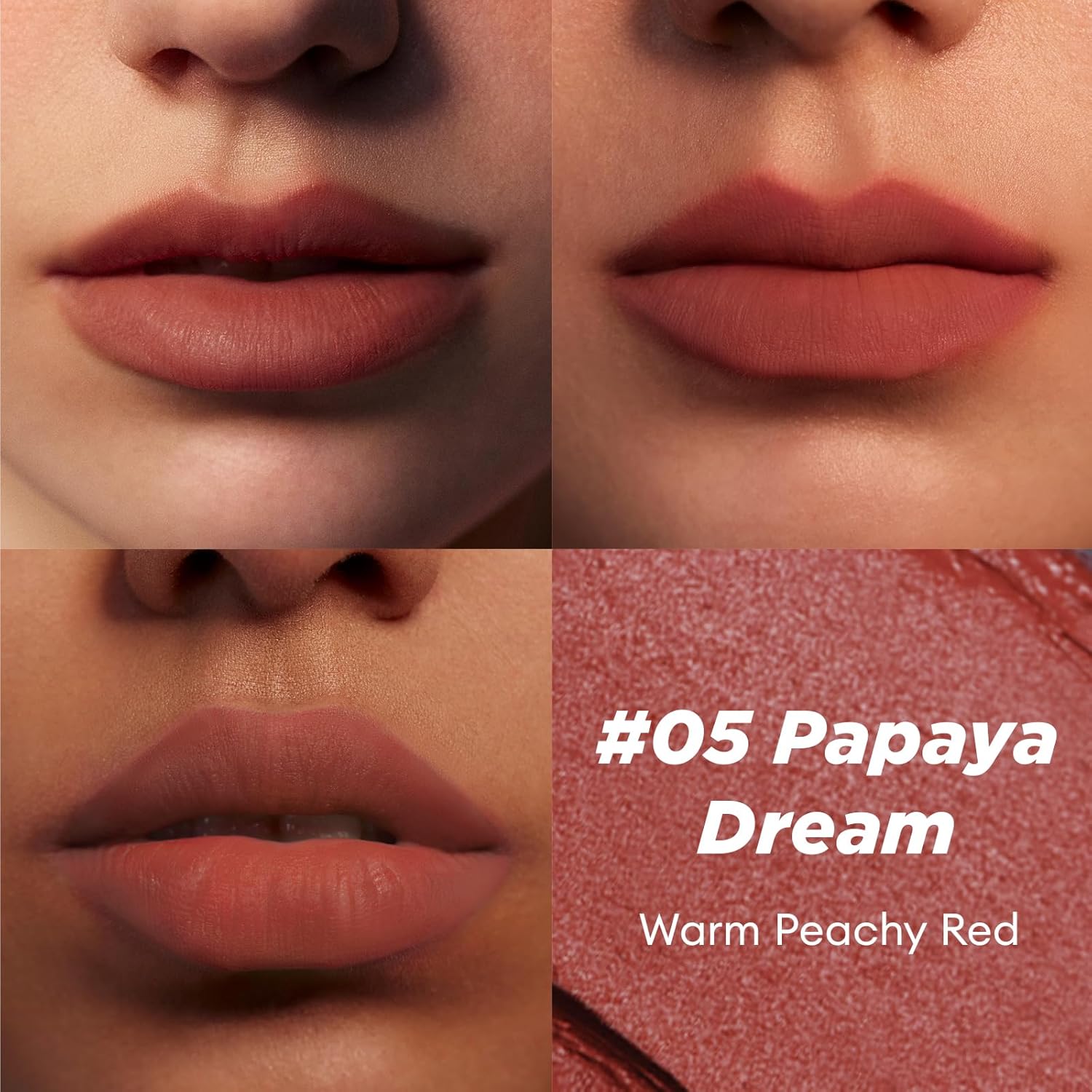ITY Velvet Matte Finish Lip Stain-Mousse Textured Pudding Pot Lip Clay with Brush, Nude Shade, Dual-Use as Lipstick and Blush, Conceals Lip Lines, Rich Pigment, 0.21 oz (6g) in Papaya Dream