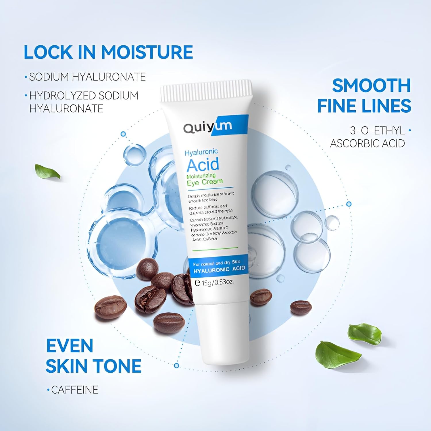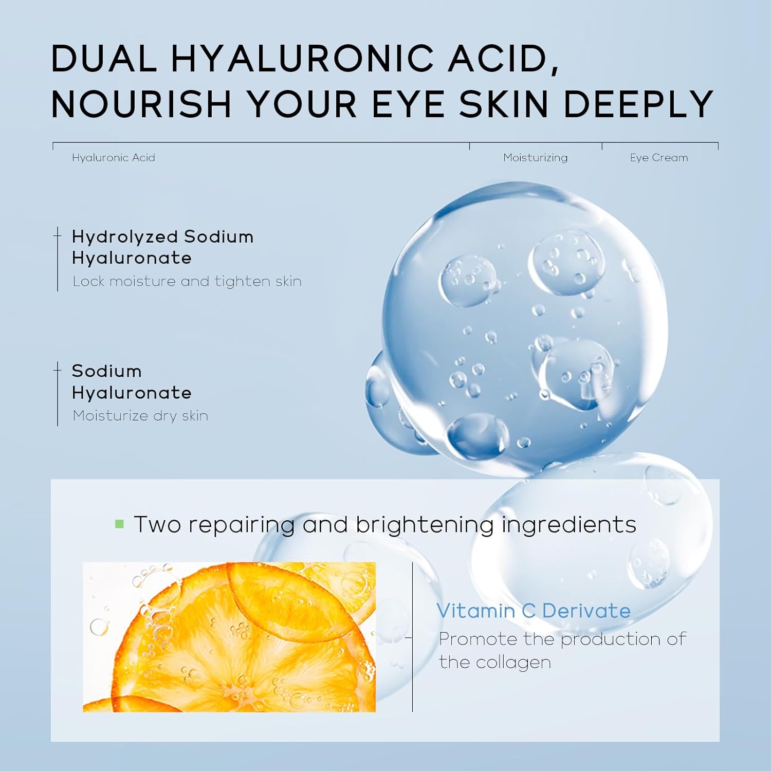 Hydrating Eye Cream, Under Eye Cream for Dark Circles & Puffiness, Hyaluronic Acid Eye Treatment Creams for Bags Under Eye, Reduce Fine Lines & Wrinkles, Anti Aging for Women 0.53oz, 2 Pack