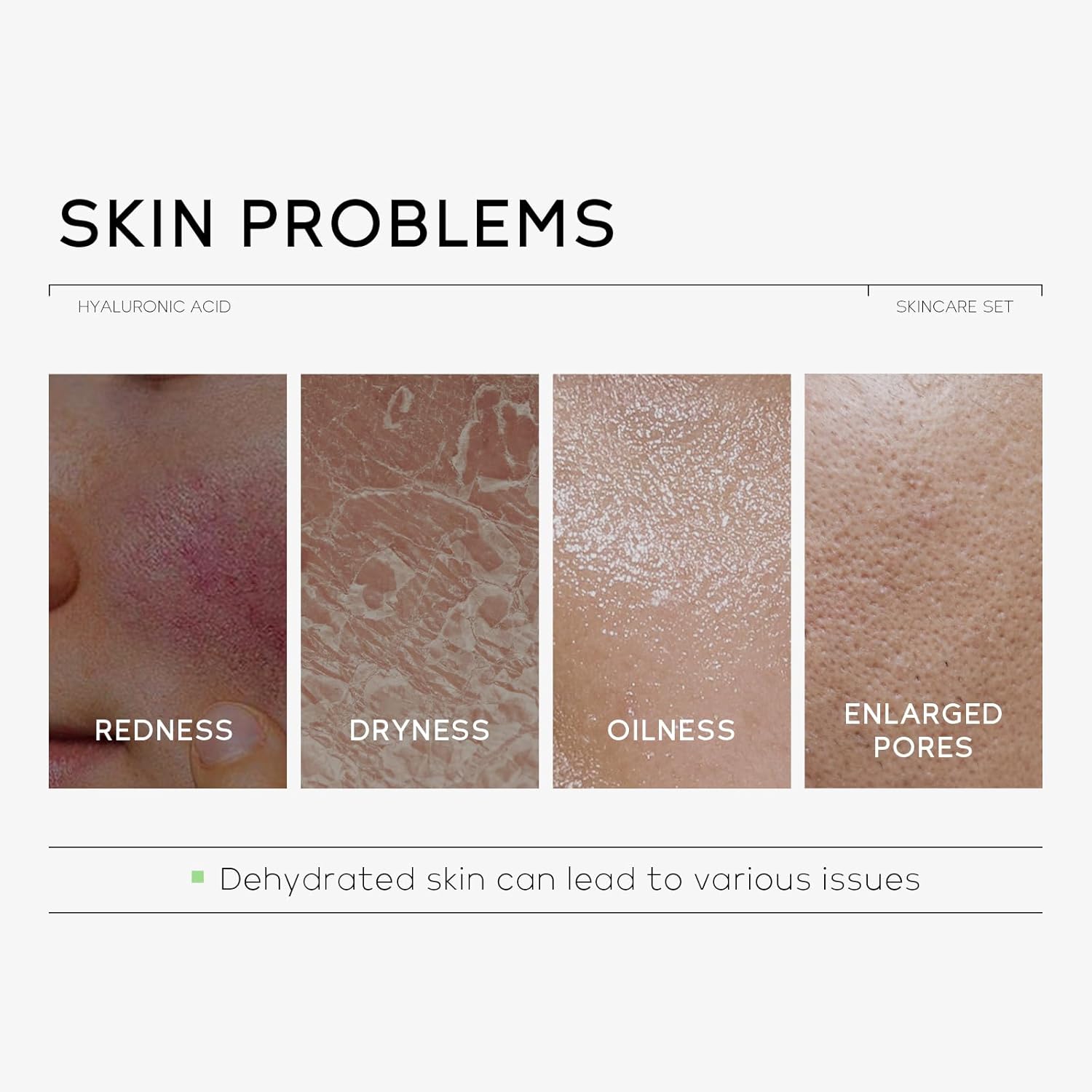 - 【Skin Care Routine Kit For Women】Low pH Cleanser(1.76 fl oz): Deeply cleanses pores, reduces sebum secretion, soothes dry skin, leaving the skin clean and smooth. Hyaluronic Acid Serum for Face(1.06 fl oz): Provides external hydration and internal moisture retention, keeping the skin hydrated and elastic. Moisturizing Eye Cream(0.53 fl oz): Moisturizes the eye area, smooths fine lines and improves puffiness, dark circles, aging and other eye concerns. Hydrating Face Moisturizer(1.06 fl oz): Deeply nourishes the skin, improves dryness and enhances the skin's ability to retain moisture.
