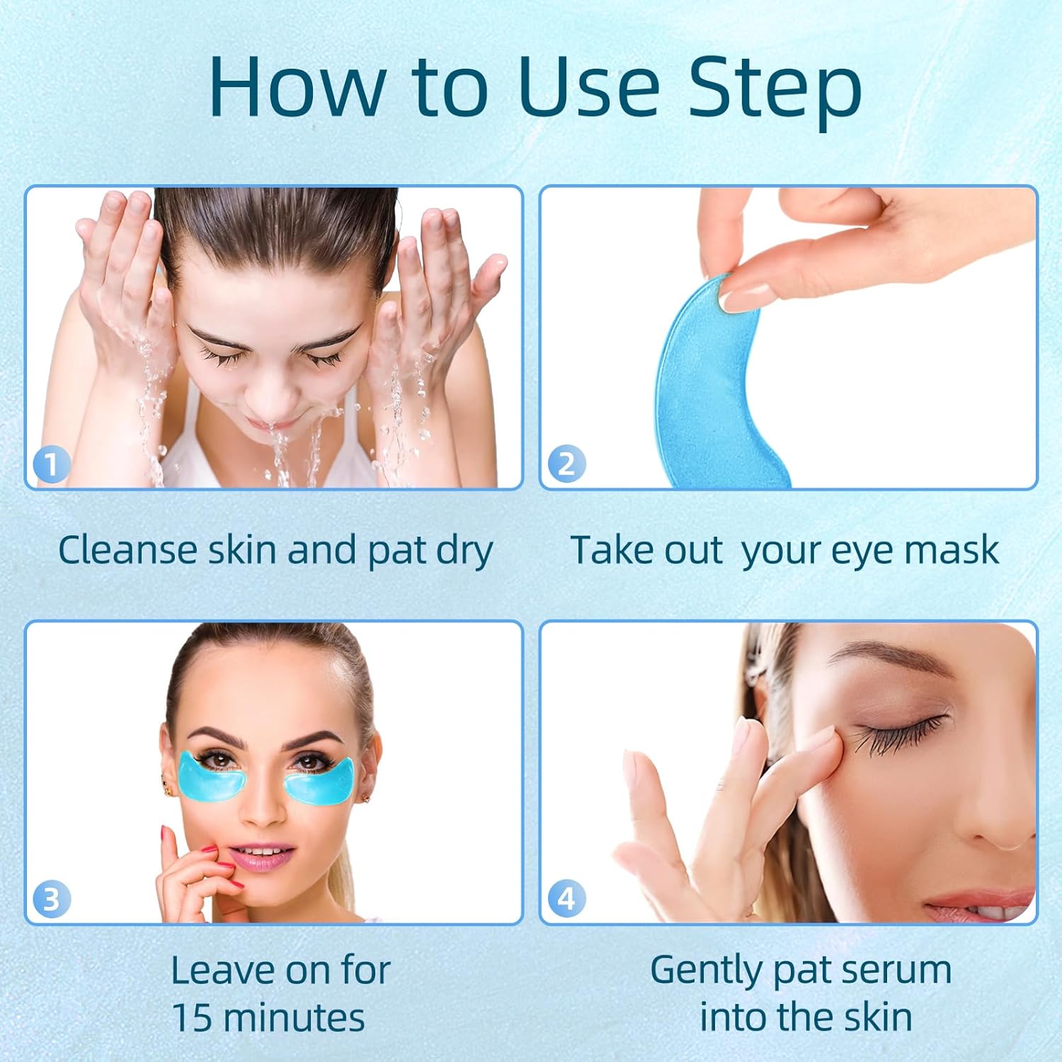 - 【Effortless Application】: The Hyaluronic Acid eye patch can refresh and rejuvenate your under-eye area with ease. Simply place our eye patches under your eyes after cleansing with warm water, press gently to secure, and hold for 15-20 minutes. Remove the eye mask and pat any remaining essence until fully absorbed. For optimal results, store in the fridge and use Once a day or at least once a week. Our patches are always on-hand to provide your skin with the care it deserves.
