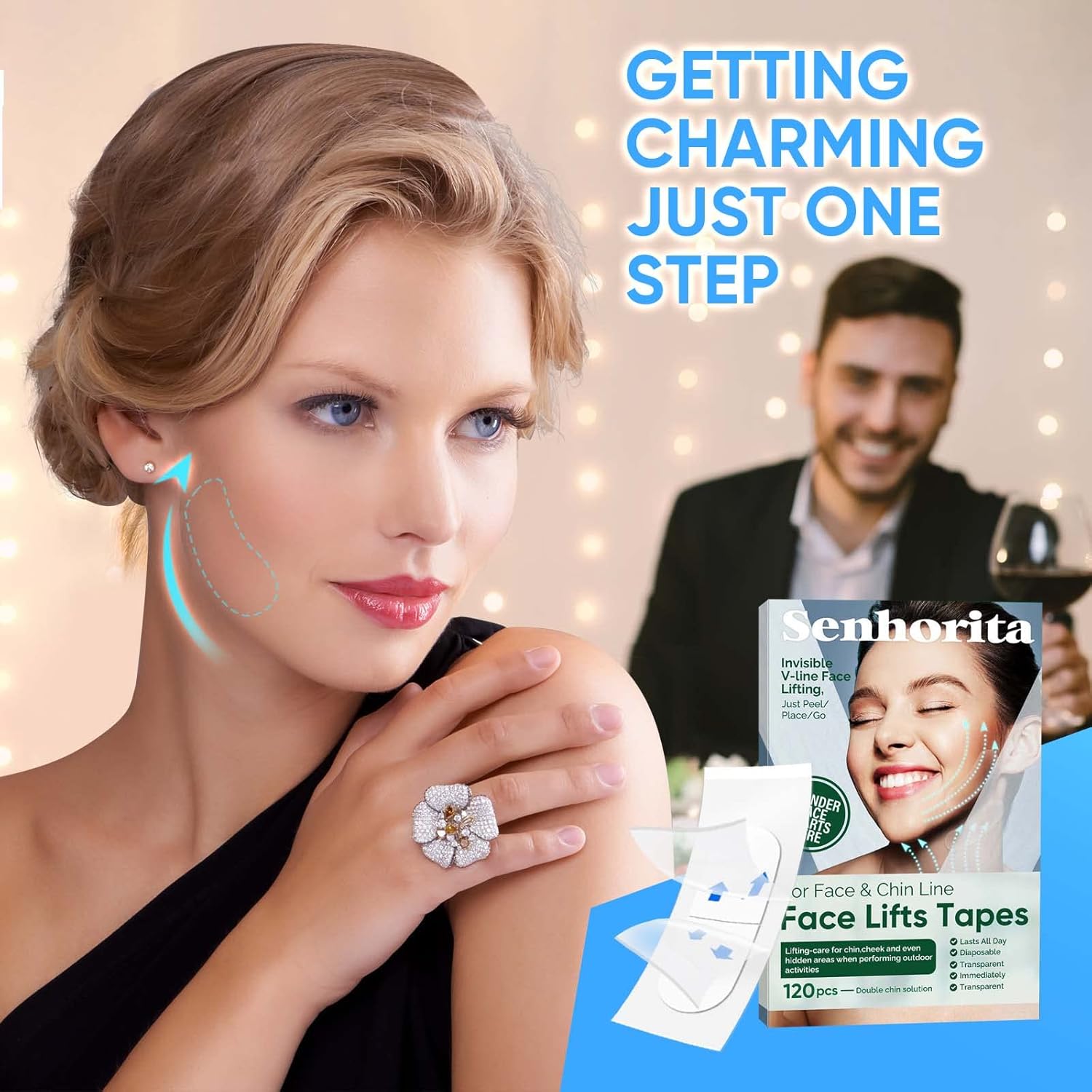Senhorita Face Lift Tape, 120Pcs Instant Face Lift Tape Invisible, Face Tape Lifting Hide Double Chin and Wrinkles, Lifting Saggy Skin