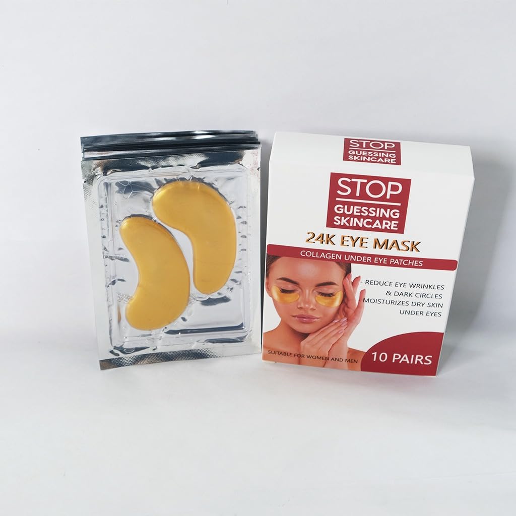 Under Eye Patches (10 Pairs) - Golden Eye Mask with Amino Acid & Collagen, Cooling Eye Care for Wrinkles, Puffy Eyes & Dark Circles, Skincare Treatment for Men & Women, USA Tested