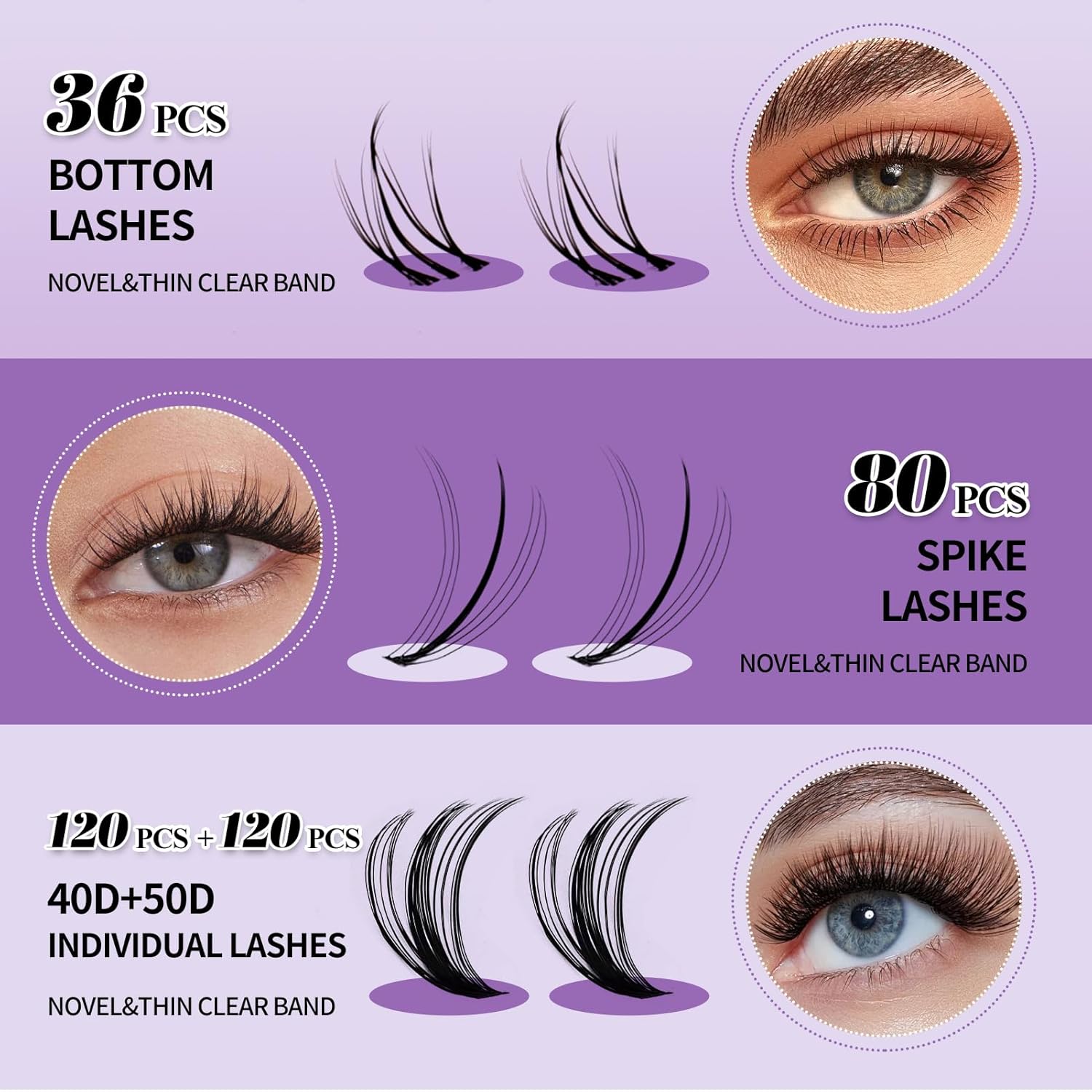 - NEWLY UPGRADED LASH EXTENSION KIT: you'll get a combination tray of upper and lower lashes (including 2 rows of bottom lashes, 4 rows of spike lashes, 4 rows of lash clusters, and 4 rows of another style of lash clusters), lash bond and seal, a lash tweezers with a great grip!