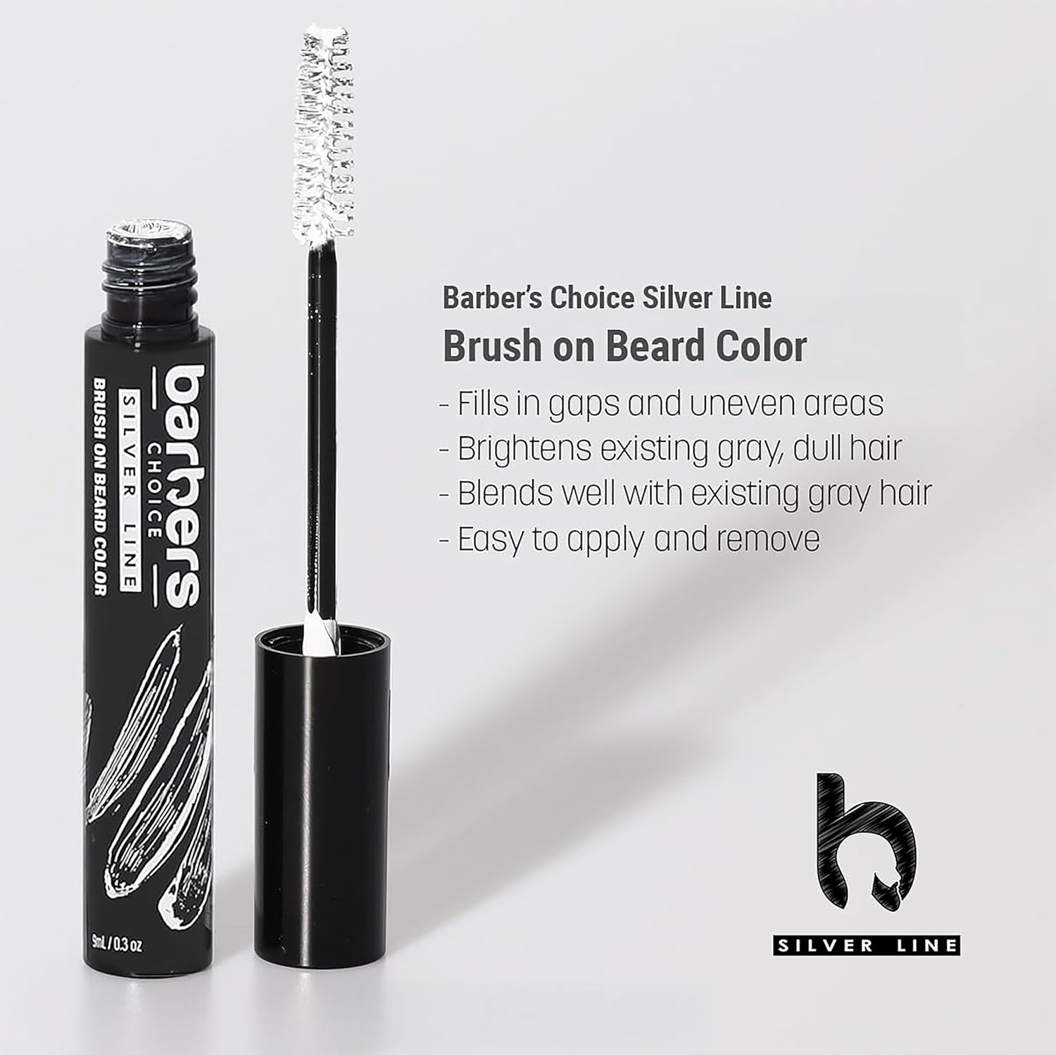 Barbers Choice Silver Line, Facial Hair Brush on Temporary Color for Silver Fox Men- Instantly Brighten White Beards, Mustache & Sideburns, Less Yellow, Easy Application, Arctic White