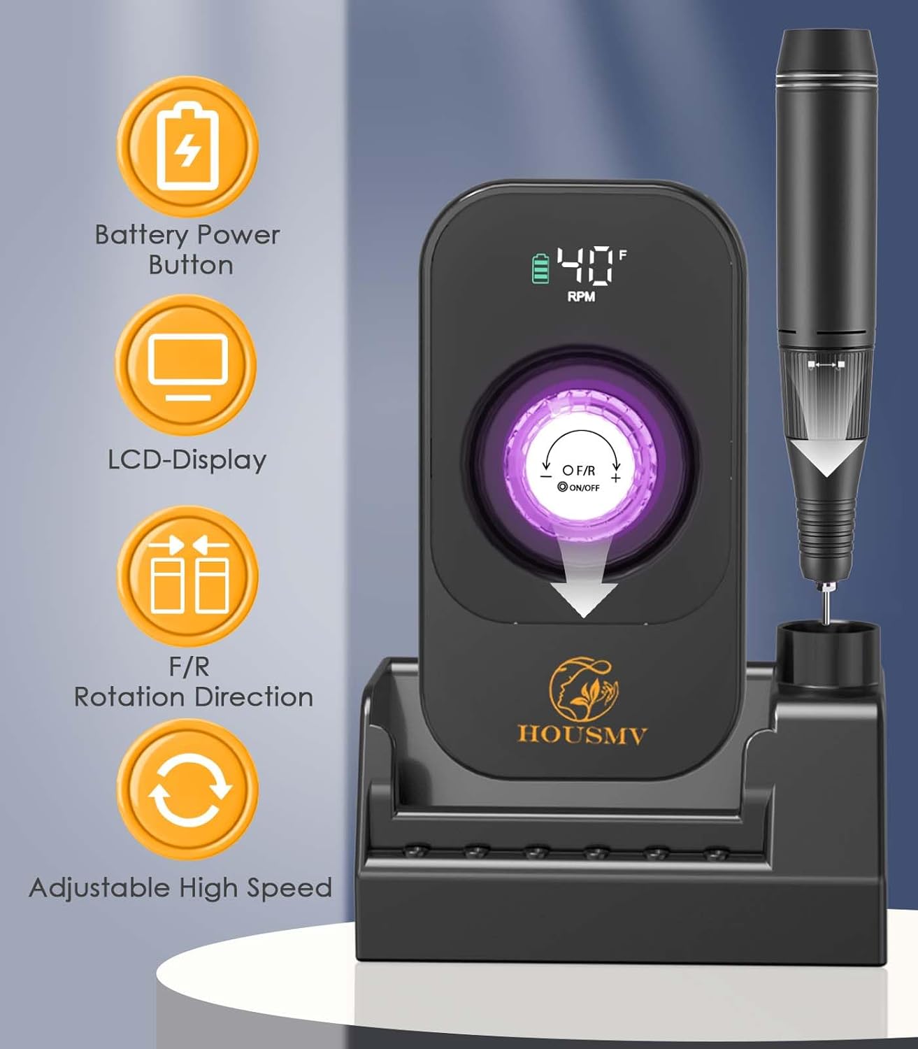 - ๐๐๐ฌ๐ฒ ๐๐ ๐๐๐: The twist-lock system makes changing nail drill bits extremely simple. The cordless electric nail drill also supports forward/reverse direction, allowing easy control for both left-handed and right-handed users, providing a quiet and comfortable nail care experience.