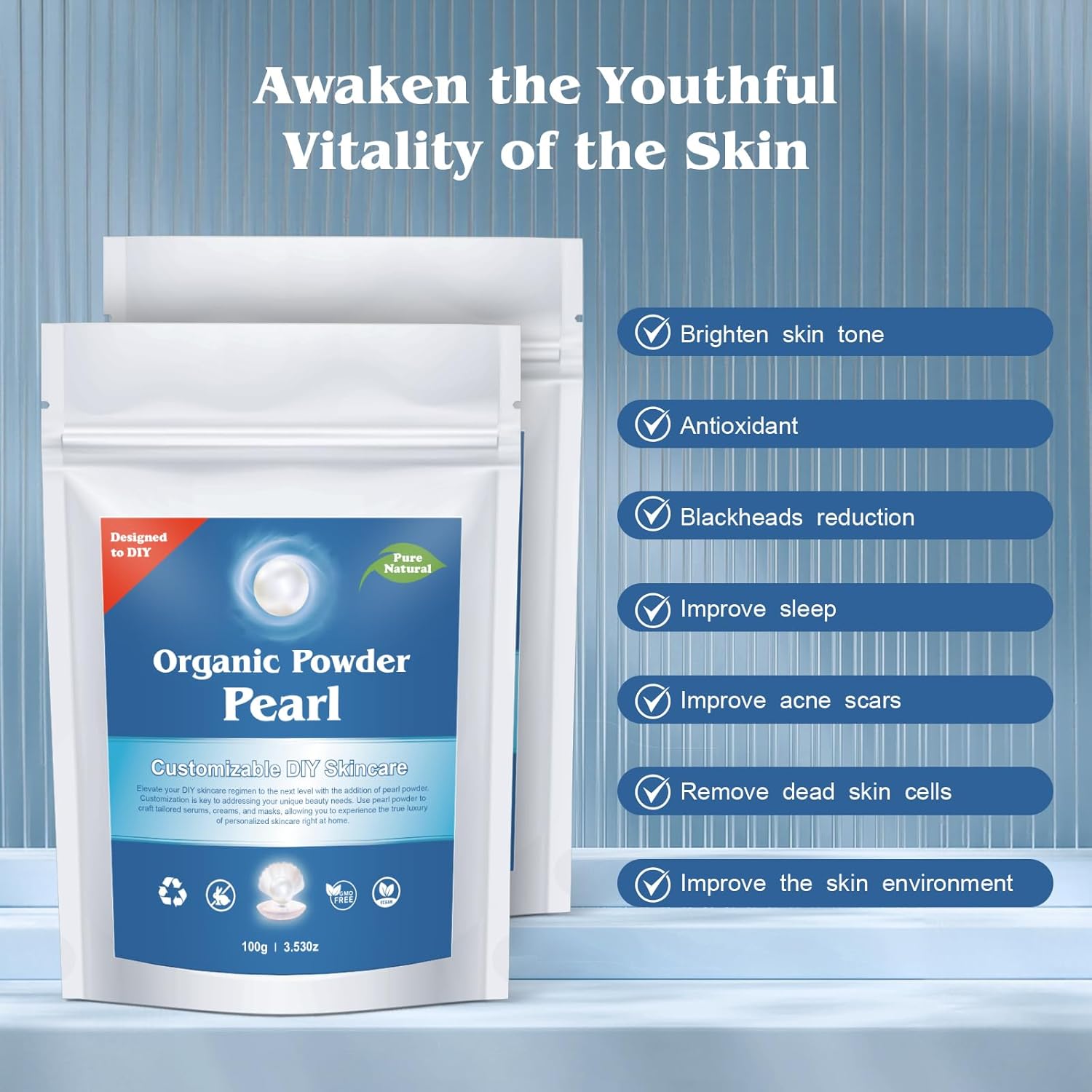 - High-efficiency rapid absorption: Our pearl powder utilizes nanotechnology, refining the pearl powder to 20~100 nanometers, allowing it to penetrate the skin deeply as if by magic. Additionally, we use bioenzymatic hydrolysis technology to convert the calcium carbonate and macromolecular proteins in the pearl powder into bioavailable active calcium and amino acids.