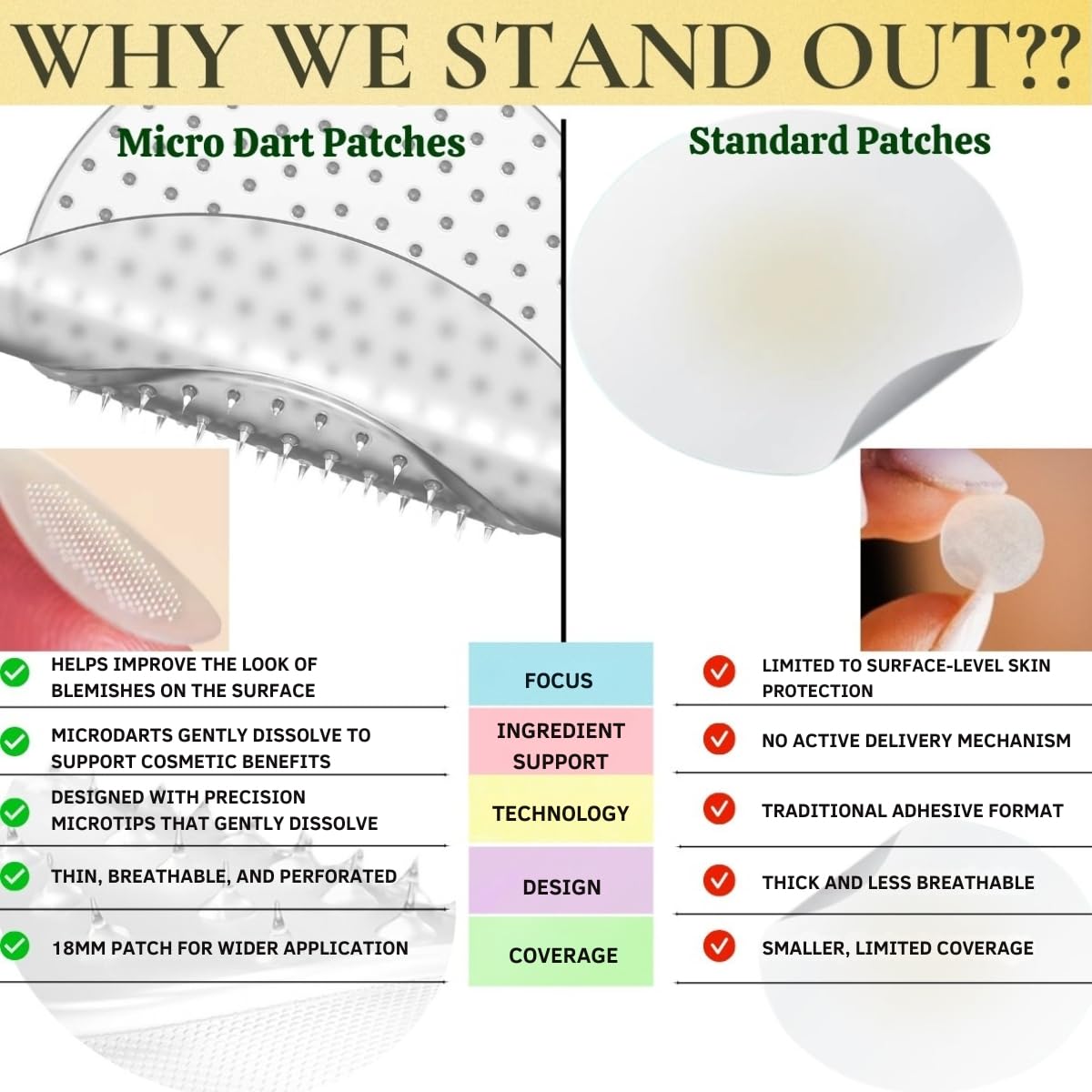 - Product Benefits : Contains hydrating and soothing ingredients that help improve the appearance of stressed or irritated skin., Infused with salicylic acid, azelaic acid, niacinamide, and willowherb extract, these cosmetic patches help visibly improve the look of blemishes and support a smoother, clearer-looking complexion., Micro Dart skincare technology gently melts into the skin’s surface to support cosmetic benefits and elevate your skincare routine., The easy-peel perforated sheet ensures hassle-free application every time., The patches act as a protective barrier, covering blemishes to help reduce exposure to dirt and pollution - supporting skin that looks calmer and more balanced., These cosmetic patches help visibly reduce the look of early blemishes, supporting a clearer-looking complexion with continued use. Contains hydrating and soothing ingredients that help improve the appearance of stressed or irritated skin., Infused with salicylic acid, azelaic acid, niacinamide, and willowherb extract, these cosmetic patches help visi… See more