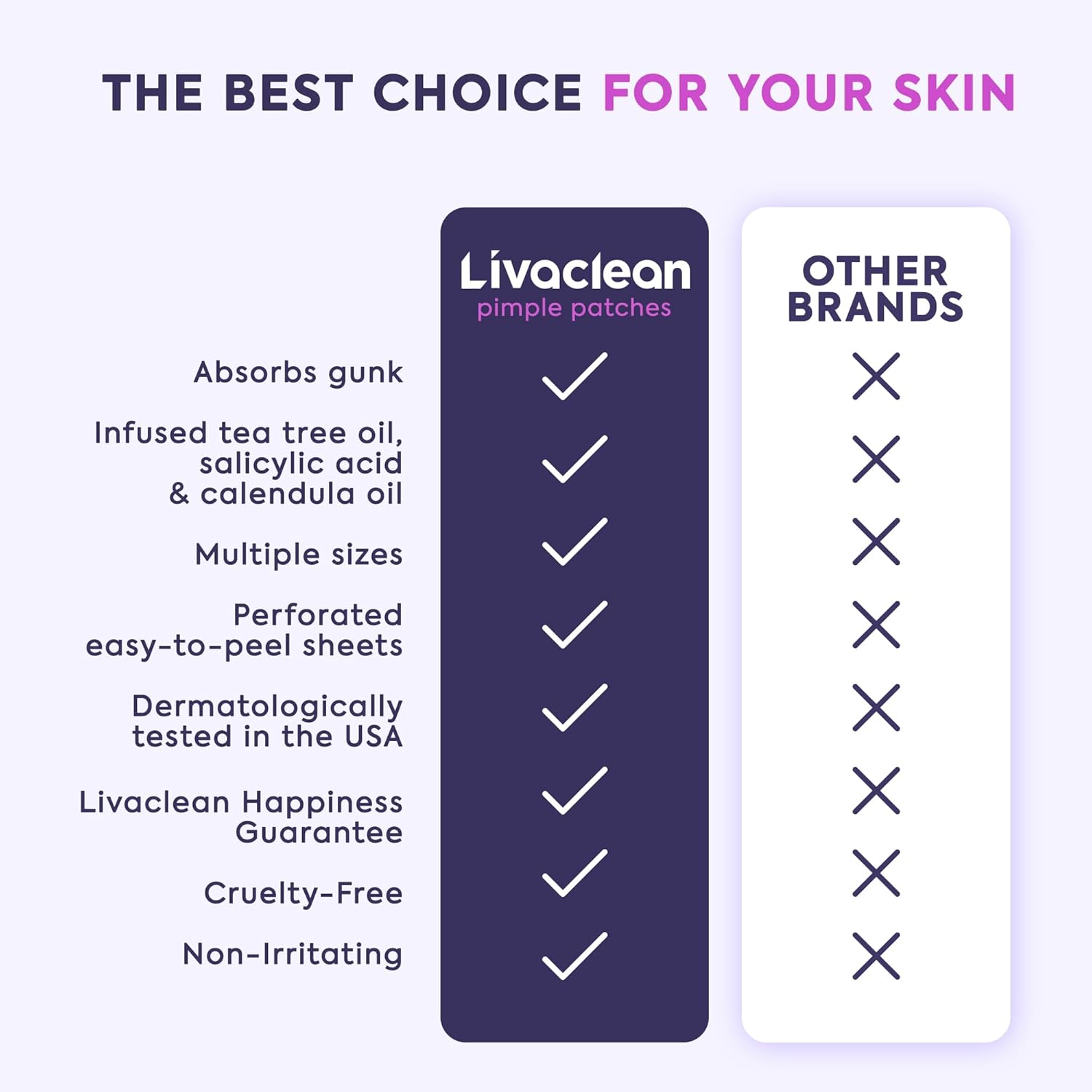 - 🌿 POWER-PACKED FORMULA - Our Livaclean hydrocolloid acne patches are infused w/Tea Tree Oil, Salicylic Acid, and Calendula Oil. This powerful trio halts blemishes and tackles dark spots aka hyperpigmentation, leaving your skin clear and radiant.