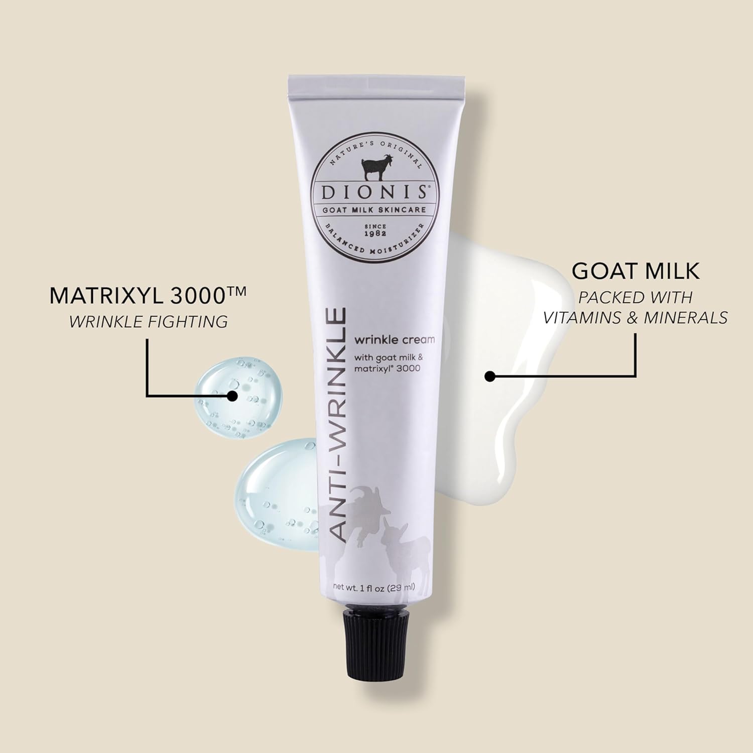 Dionis Goat Milk Skincare 1 fl oz Anti-Wrinkle Cream - Cruelty Free, Paraben Free, For All Skin Types