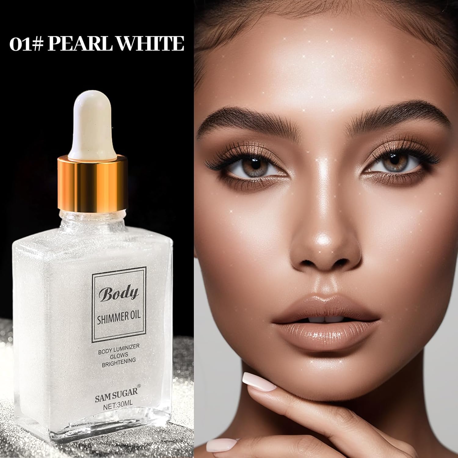 - [Shimmering Body Oil]:This shimmering body oil will brighten your skin and give your face and body a healthy glow, it will brighten and moisturize the face, body and hair. Suitable for any occasion and all makeup. This highlight oil is available in three colors: pearl white, rose gold and gold.