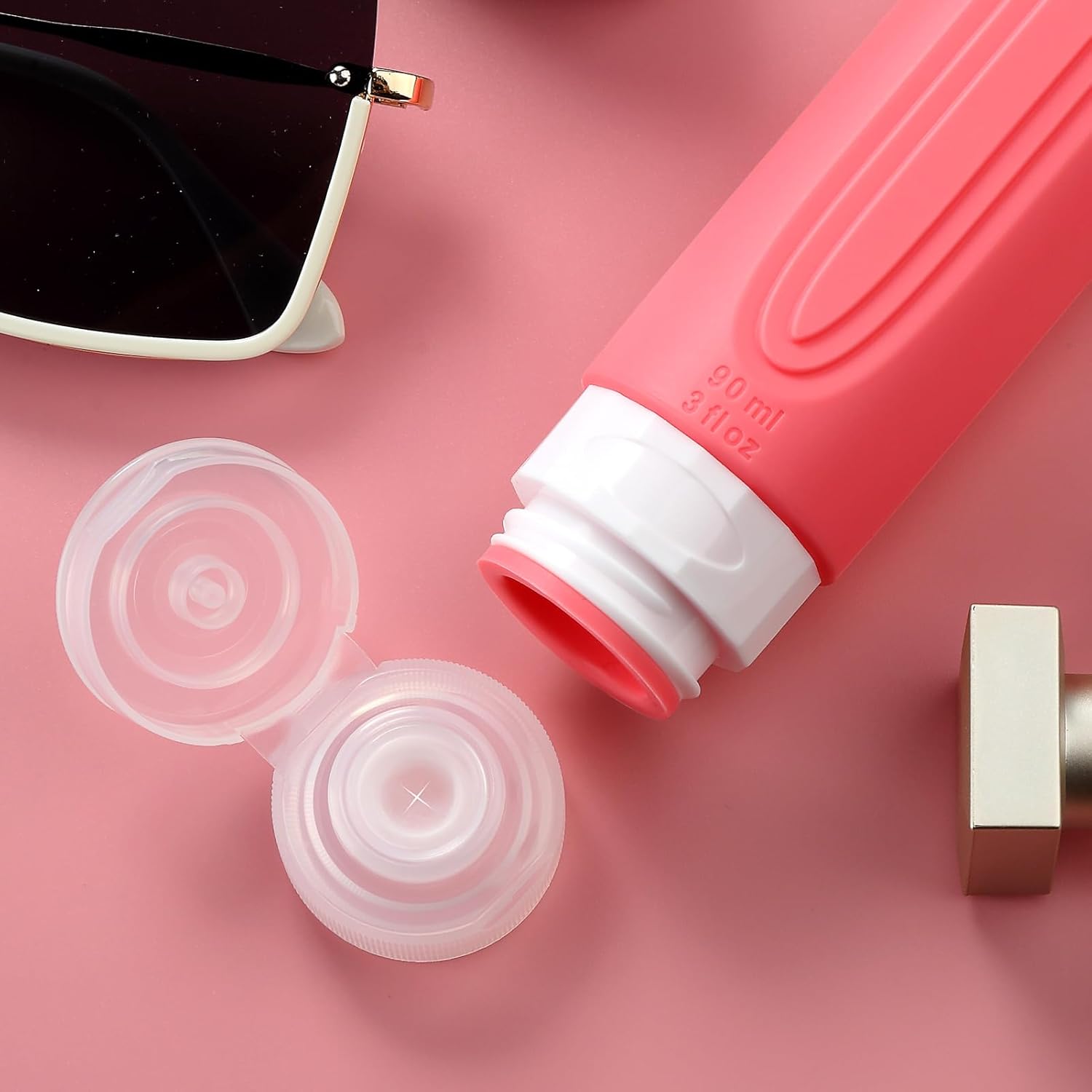 Travel Bottles for Toiletries, Tsa Approved 3oz Travel Size Containers BPA Free Leak Proof Refillable Liquid Silicone Squeezable Travel Accessories for Shampoo Conditioner Lotion (4 Pack)