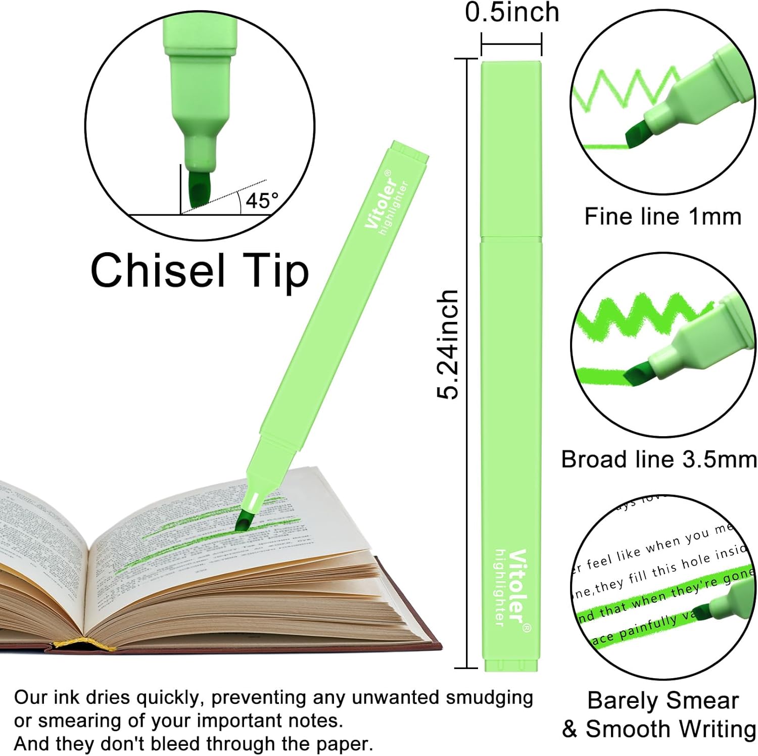 Vitoler 10Pack Bible Highlighters, Cute Assorted Colors Pastel Highlighters No Bleed Chisel Tip Highlighter for Aesthetic School Supplies