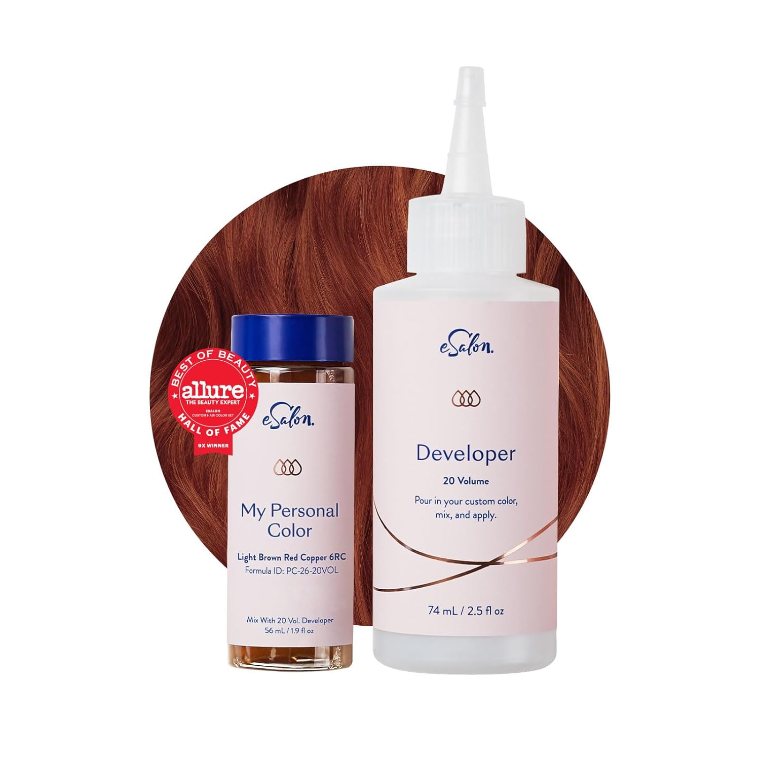 eSalon Permanent Hair Color & Hair Dye Complete Kit - Personal Colorist Kit for Up To 100% Gray Coverage for All Hair Types - Professional-Grade Ammonia-Free Hair Dye (Light Brown Red Copper 6RC)