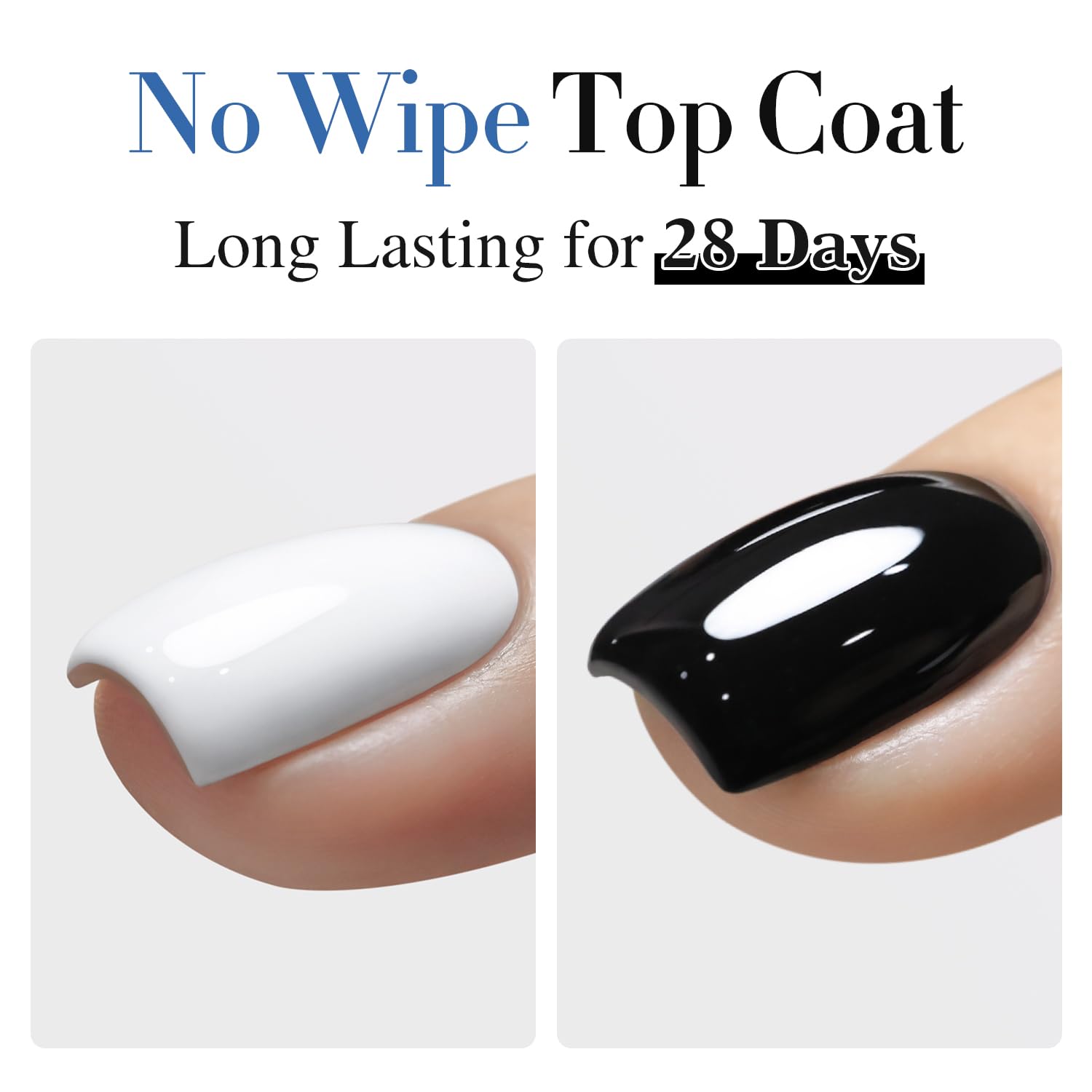 Double Rhythm 15ML No Wipe Gel Top Coat Base Coat Iridescent Glitter Shimmer 2 in 1 Nail Polish Soak Off Manicure DIY Home Salon (Clear)