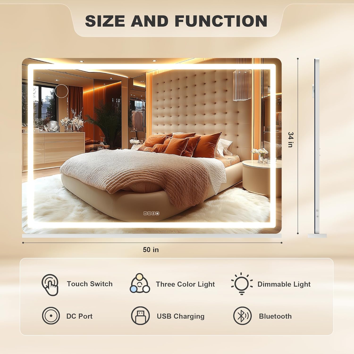 - 👍【Smart Touch Control & Memory Function】This makeup mirror with lights has 3 smart touch buttons, turn on/off the light by touching the sensor switch, press the left button to change the color modes, and long press the right button to adjust the LED brightness. This lighted makeup mirror is designed for memory function and keeps your lights set like last use.
