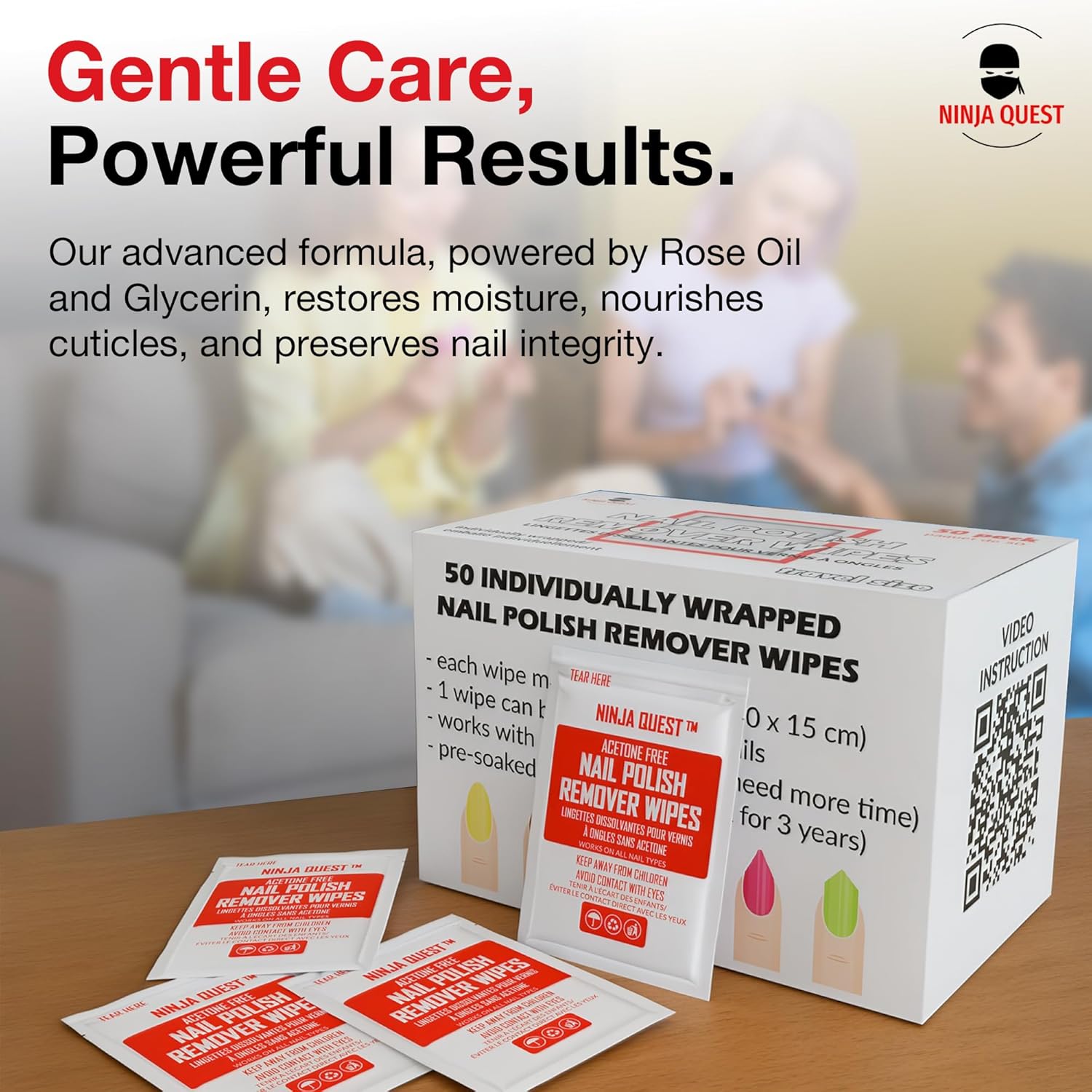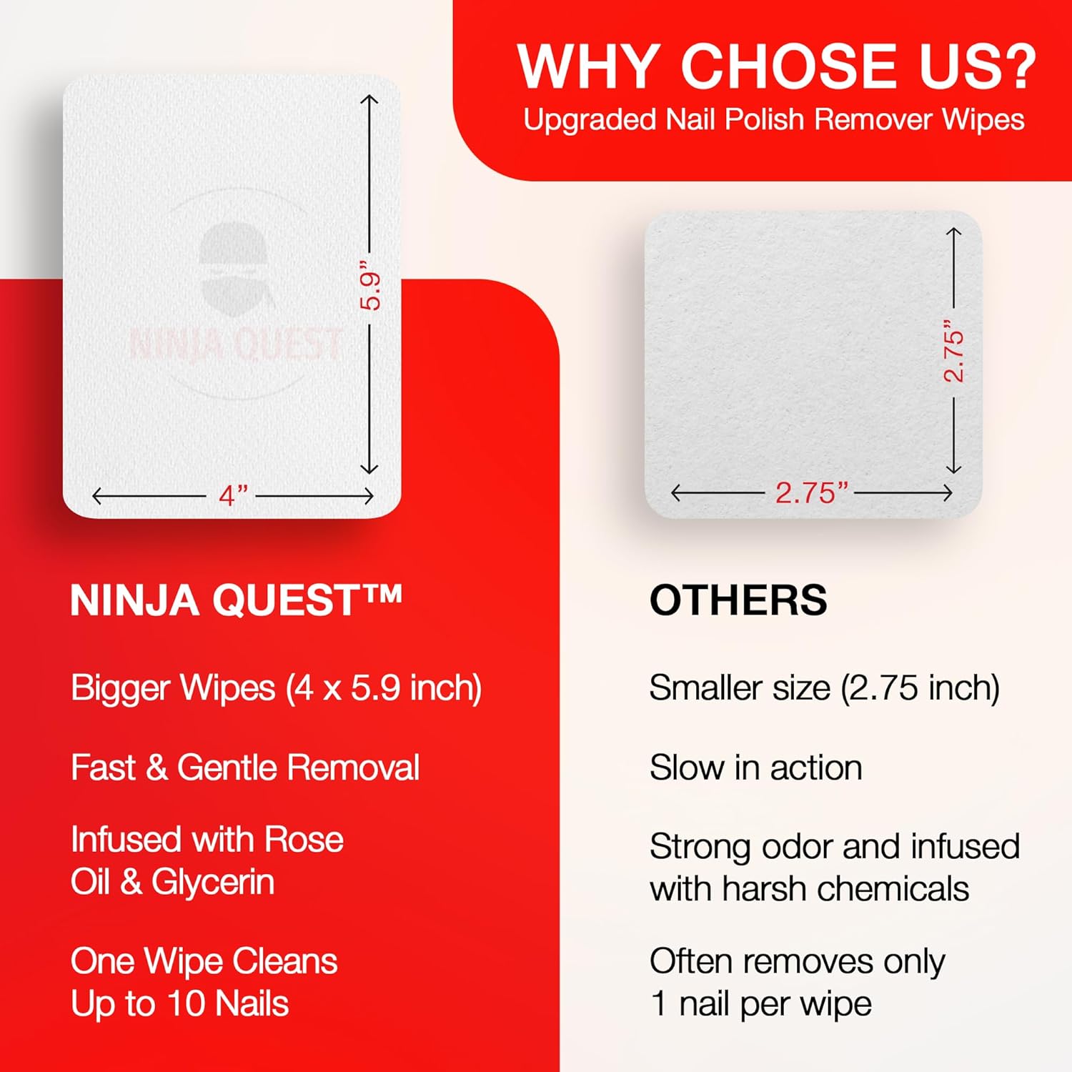 - [Acetone-Free and Gentle]: Our nail polish remover wipes are formulated without acetone, making them safe for all nail types. Ninja Quest nail polish remover pads effectively remove polish without causing damage or dryness, perfect for sensitive skin.