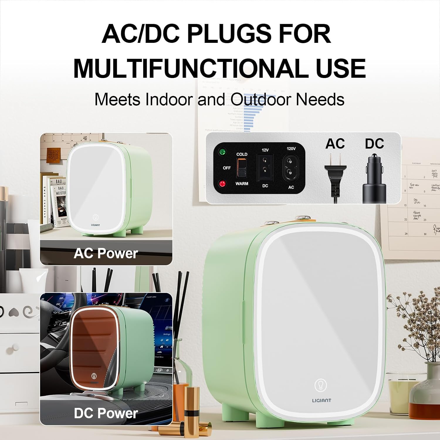 DF01A Skincare Fridge, Mini Fridge for Skincare with 3-Level Dimmable LED Light Mirror, Low Noise 4L Makeup, Cooler & Warmer, Portable Design for Multiple Uses - Bedroom, Office, and Car