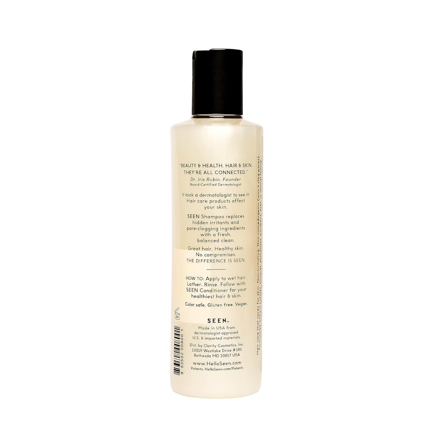 - Formulated Without: Sulfates, silicones, phthalates, parabens, dyes, pore-clogging oils, formaldehyde-releasing preservatives, or gluten. Vegan. Cruelty-Free.