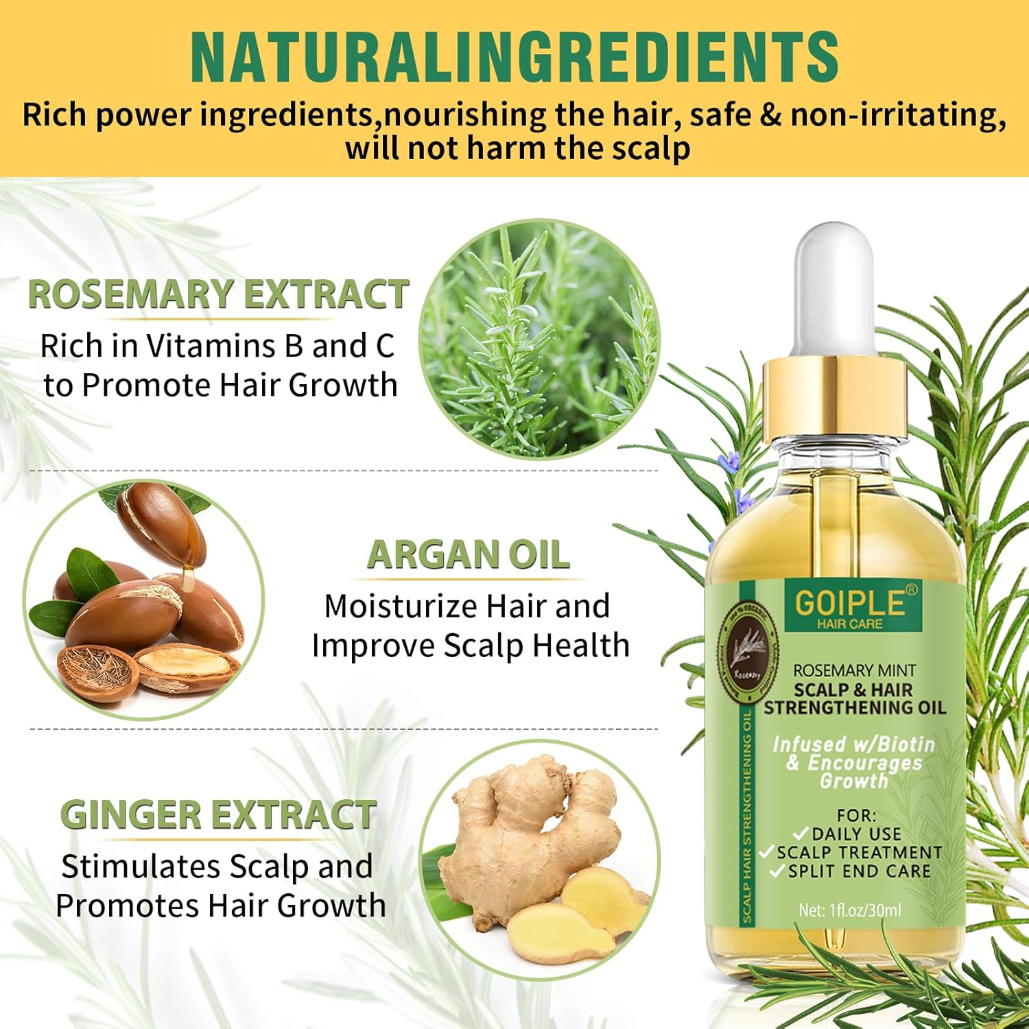 - Rosemary Oil for Hair Growth: Infused with high-quality natural rosemary essential oil, our hair growth oil enhances shine and promotes healthy hair, boosting your confidence with every use