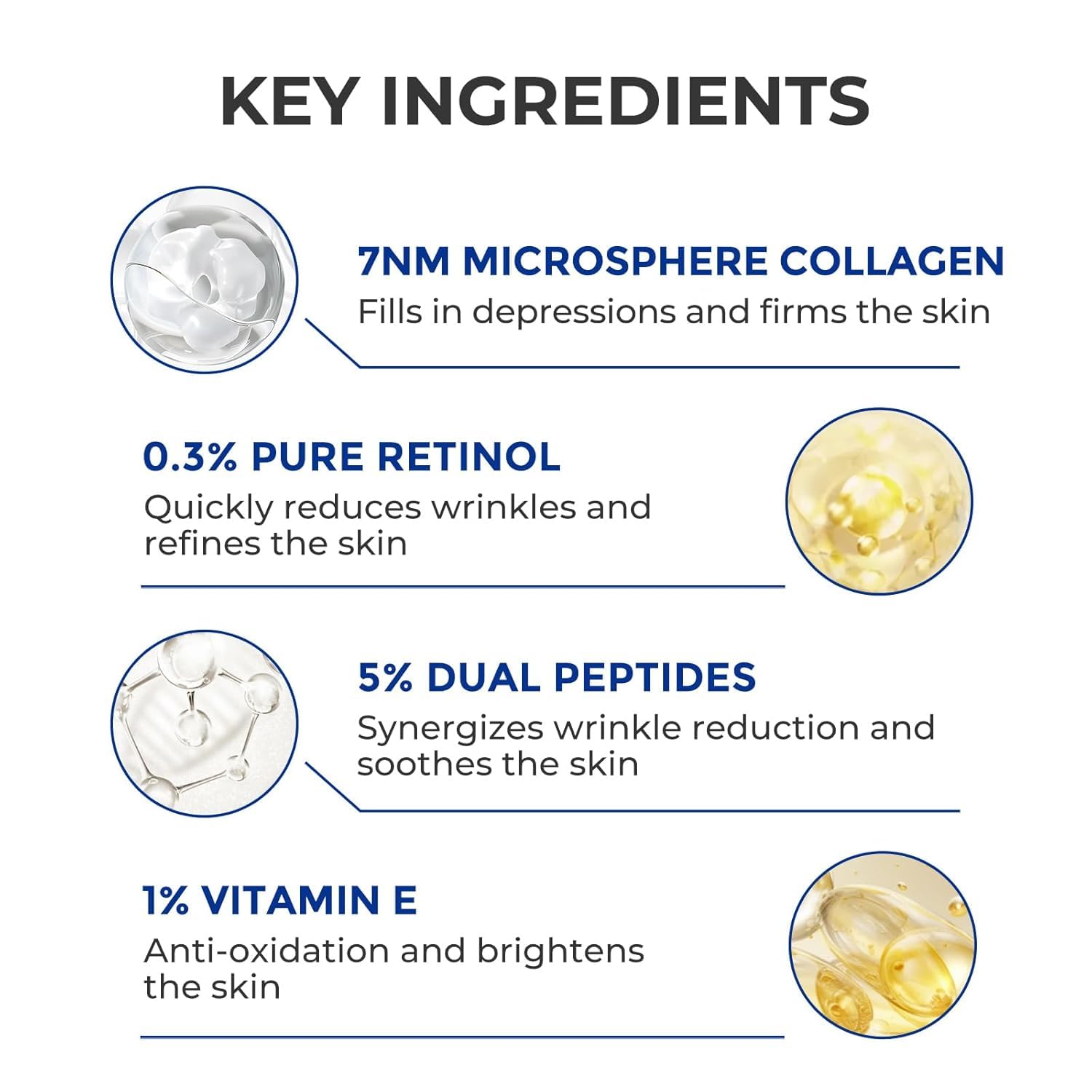 - Special Ingredients : Retinol, Spherical Collagen, Dual Peptides, Vitamin e