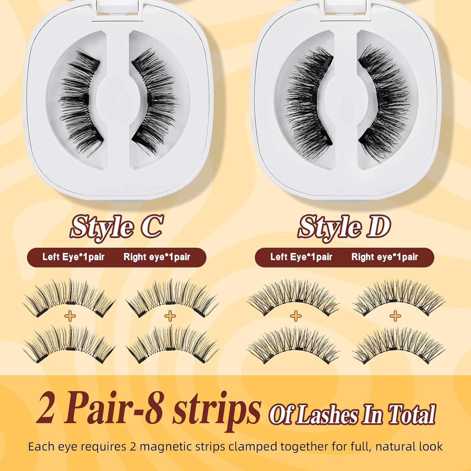 QUEWEL 2 Pairs Magnetic Eyelashes, Reusable No Glue Needed Magnetic Eyelashes Kit with Applicator Lash Clusters Kit without Eyeliner Easy to Wear and Remove (G-YC-C+D01)