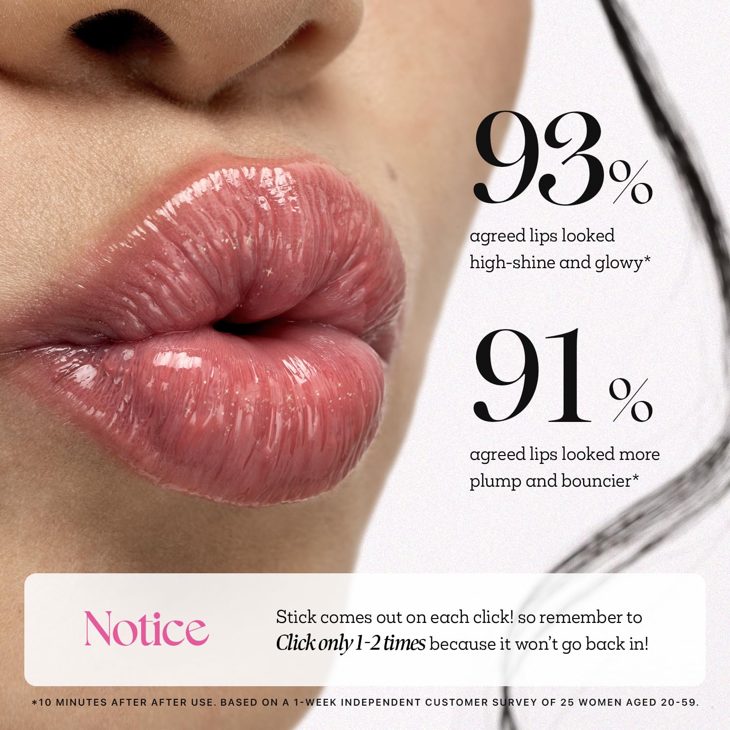 - 💗HOW TO USE: Please check, on one click the stick COMES OUT! Make sure you click "once" at a time because it won’t go back in. It’s a quick, easy and hygienic Honey Melting lip for you.